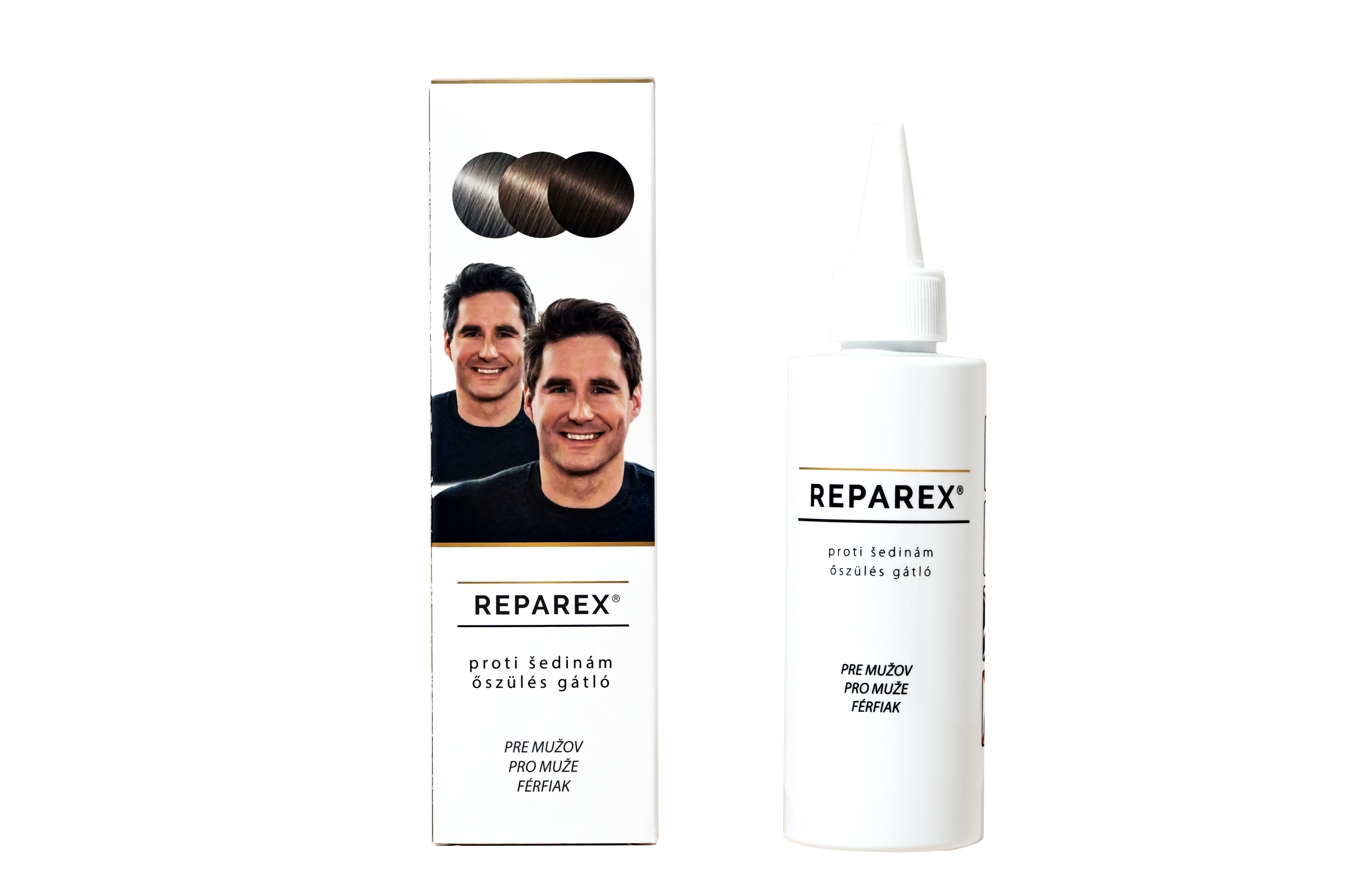 Reparex najdete ve 3 modifikacích přizpůsobených speciálně pro MUŽE, ŽENY a vousy. ŠETŘÍ peníze, jedna lahvička Reparexu vydrží až 2 měsíce a nikdo si nevšimne, že to používáš