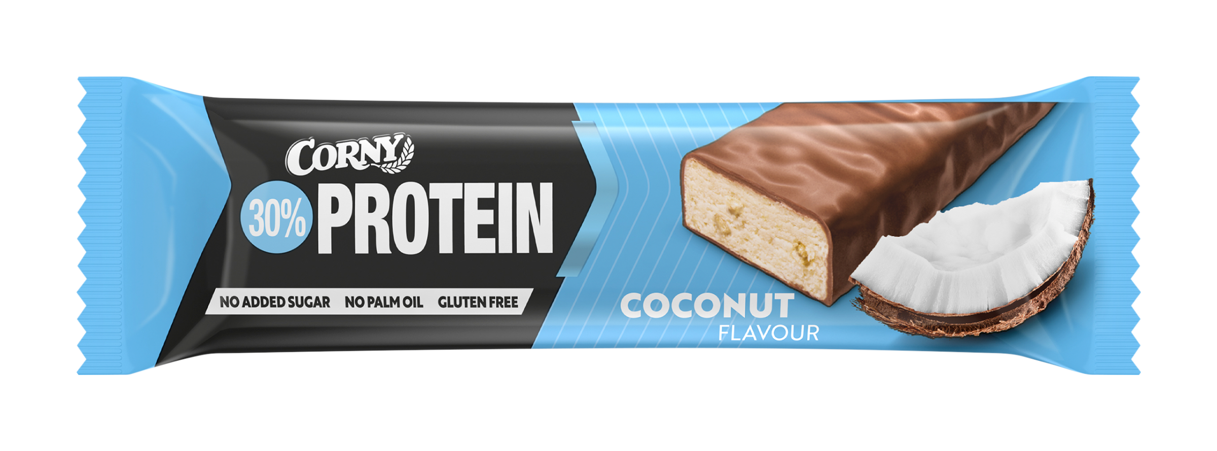 CORNY 30% Protein Kokos Ideální svačinka, pokud žiješ aktivním životním stylem a nechceš dělat kompromis v chuti. Kousky kokosu v CORNY proteinových tyčinkách vytváří jedinečnou chuť, která tě dostane. Dosáhli jsme měkčí a vláčnější textury díky kolagenu, což tě zaručeně potěší. Potřebuješ rychle doplnit energii? Corny proteinová tyčinka je díky svým benefitům ideální volba.