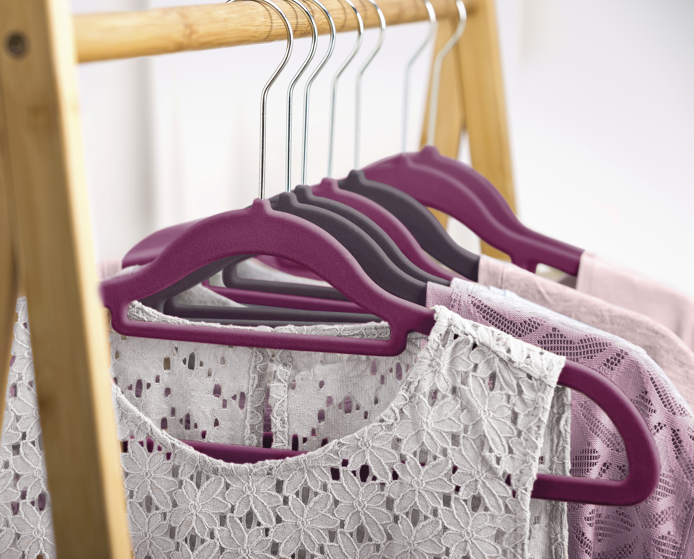 Ramínka Ideenwelt pomohou udržet šatník přehledný a oblečení v perfektním stavu. Protiskluzový povrch zabraňuje sklouzávání i jemných materiálů, takže halenky, šaty nebo saka zůstávají bezpečně na svém místě. Štíhlý tvar šetří místo ve skříni a zároveň podporuje správné zavěšení oděvů bez zbytečných záhybů. Praktické řešení pro každodenní organizaci i elegantní vzhled šatníku.