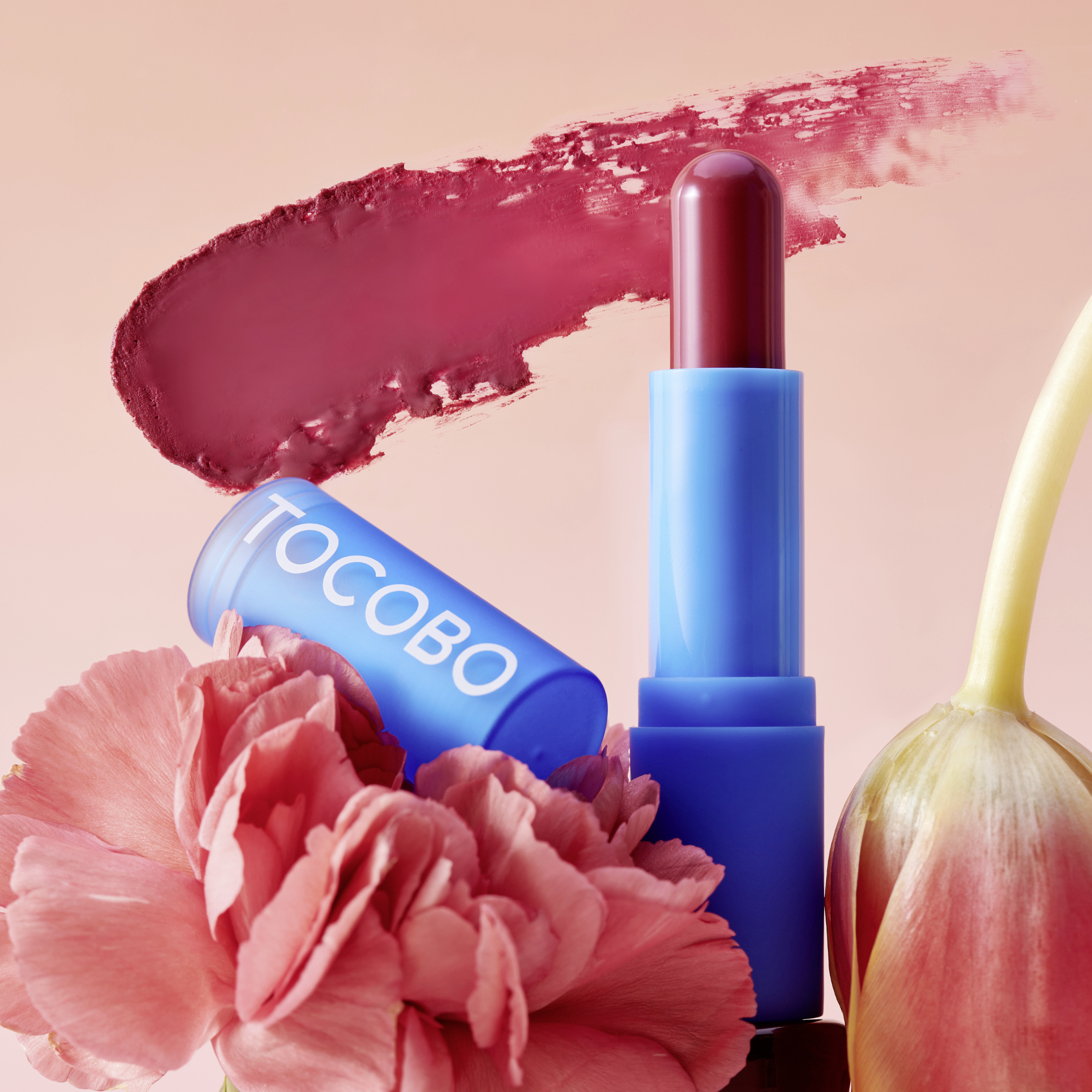 Krémovo-pudrový tónovací balzám na rty v růžovém odstínu.