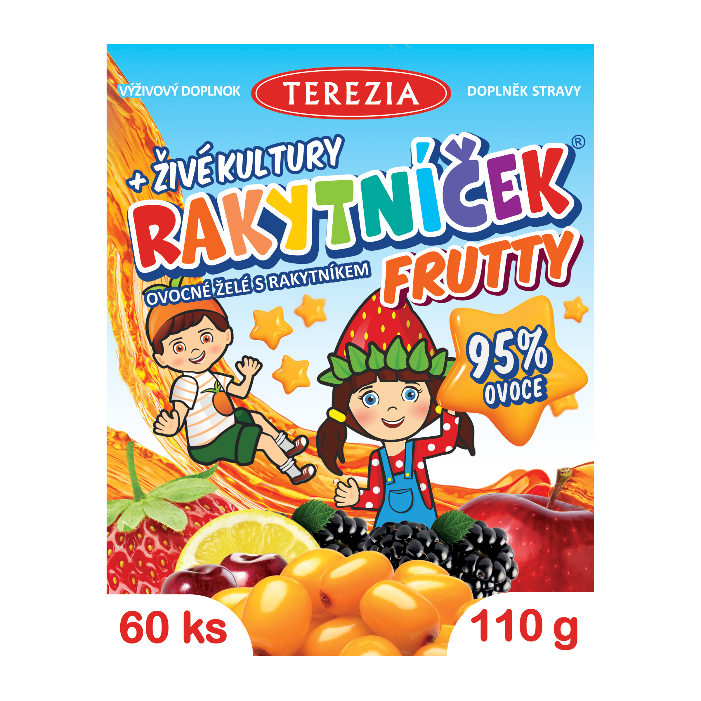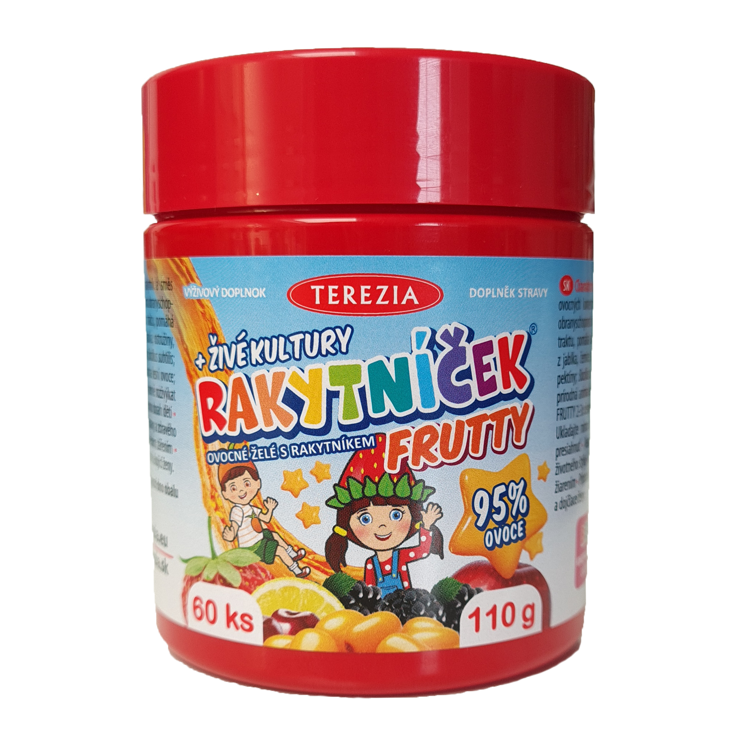 Nové ovocné želé RAKYTNÍČEK FRUTTY obsahují rakytník a směs ovocných koncentrátů a probiotika. RAKYTNÍK REŠETLÁKOVÝ je vhodný na podporu obranyschopnosti organizmu, pomáhá snižovat únavu, podporuje činnost srdce a trávicího traktu, pomáhá udržovat zdravou pokožku.