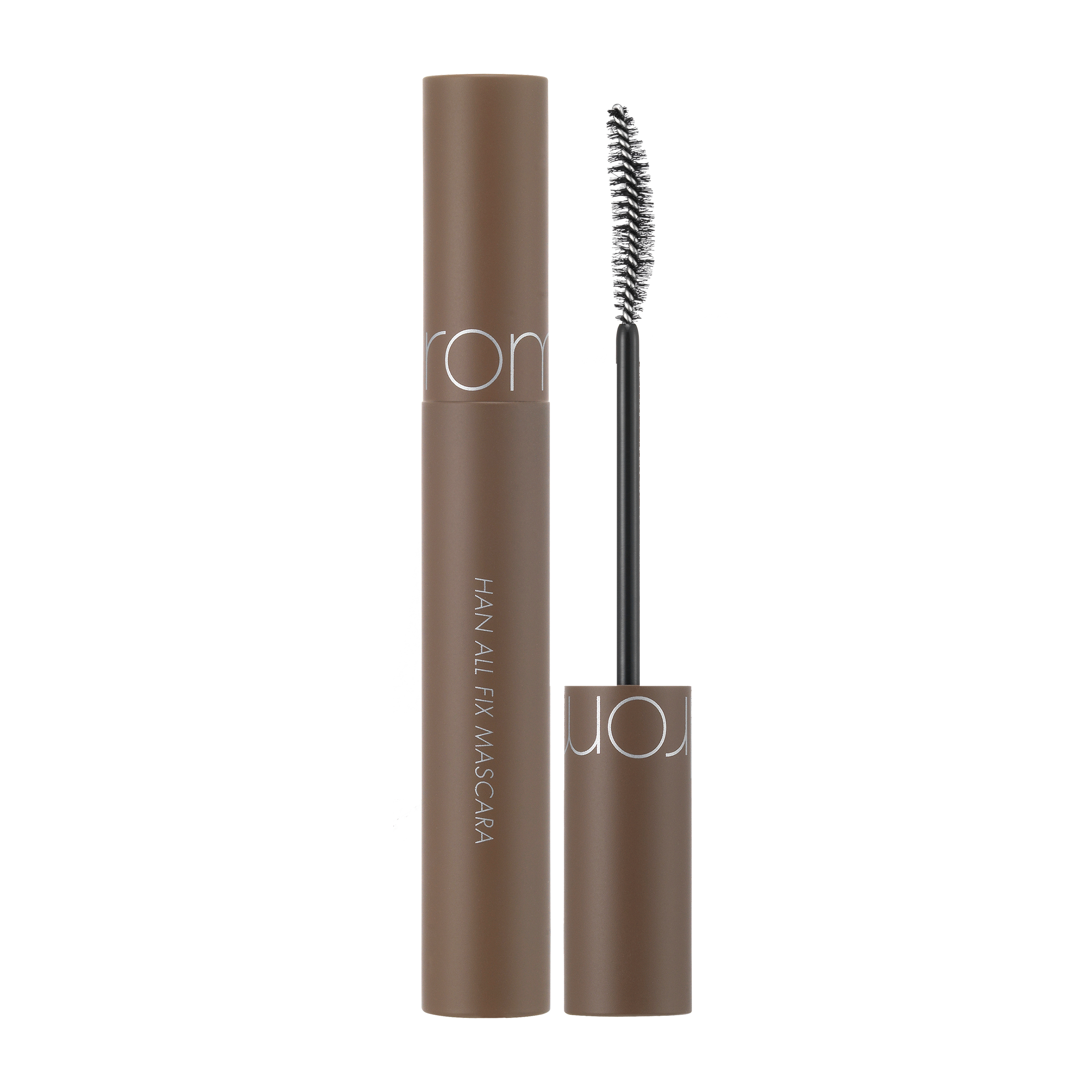 Rom&nd - Han All Fix Mascara - řasenka v hnědém odstínu. Má voděodolnou konzistenci, zajišťuje dlouhotrvající efekt, nezanechává hrudky a během dne se nerozmazává. Zahnutý kartáček prodlužuje a natáčí řasy. Díky specifické barvě poskytuje přirozený efekt.
