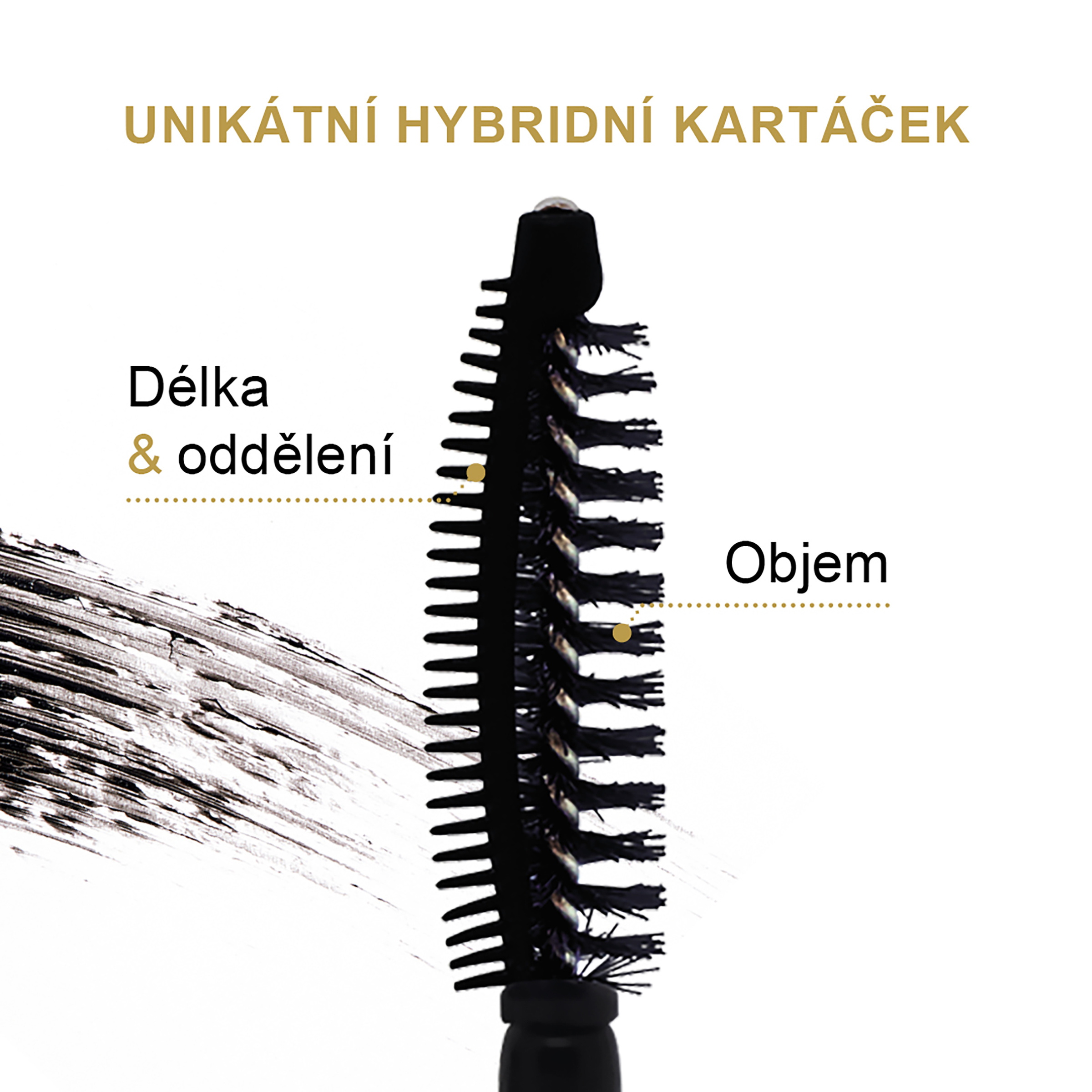 Dlouhotrvající řasenka, která řasy extrémně prodlouží. Jemně odděluje jednotlivé řasy bez slepení. Absolutně unikátní systém kartáčku, který lze použít různým způsobem. Kombinace jemných vláken a na druhé straně hřebínek pro ten nejlepší efekt. Oftalmologicky testovaná. Odstín HYPERBLACK – velmi temná, černá barva pro zvýraznění. Testy potvrdily velmi dobrou schopnost odolat vlhkosti, nerozmazává se. 87% ingrediencí je přírodního původu. VEGAN a bez parabenů.