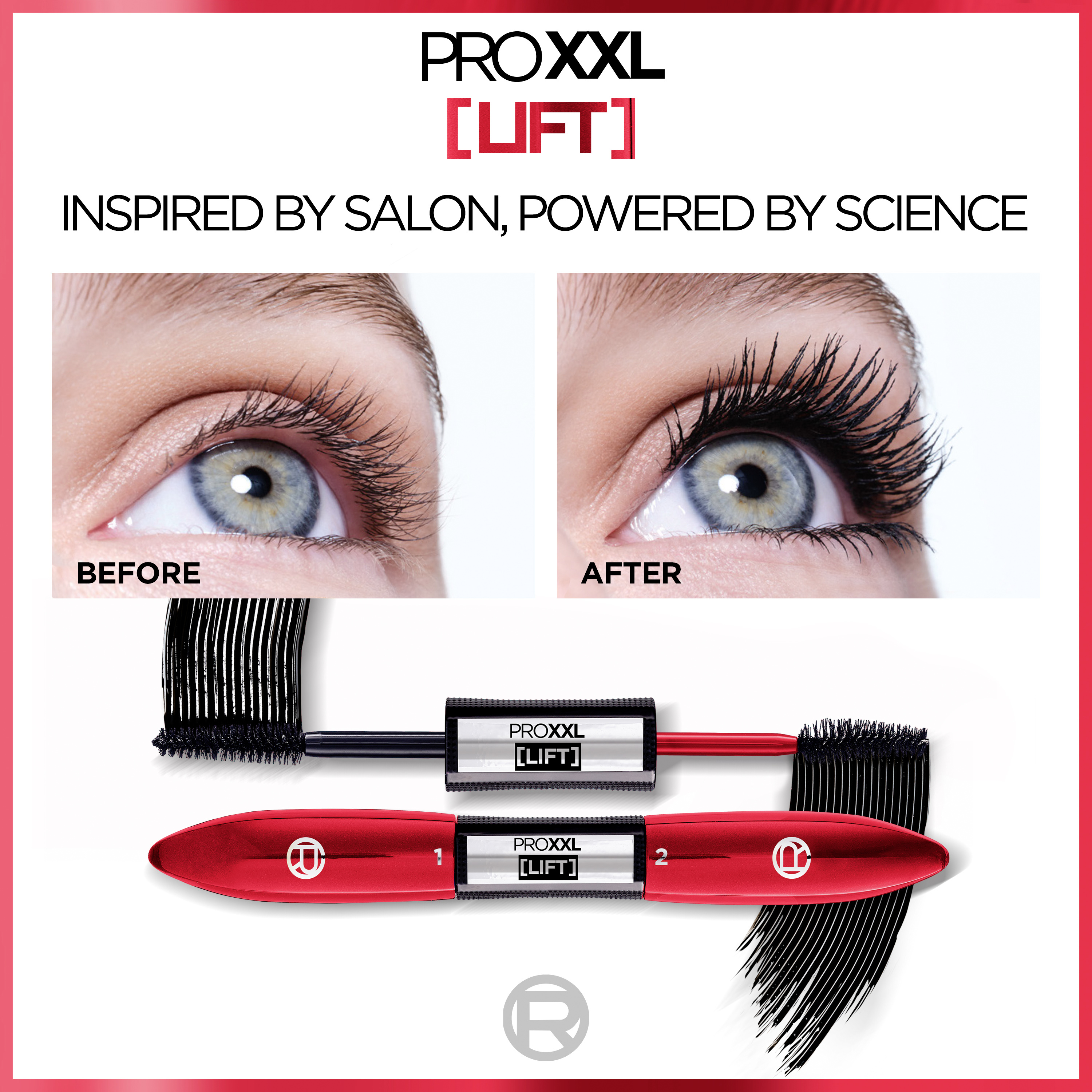 Inovativní řasenka PRO XXL Lift pro okamžité natočení a nadzvednutí řas. Řasenka obsahuje dva inovativní kartáčky se složením obohaceným o pro-keratin pro desetkrát plnější a objemnější řasy s precizním natočením a pozvednutím až po dobu 24 hodin.
