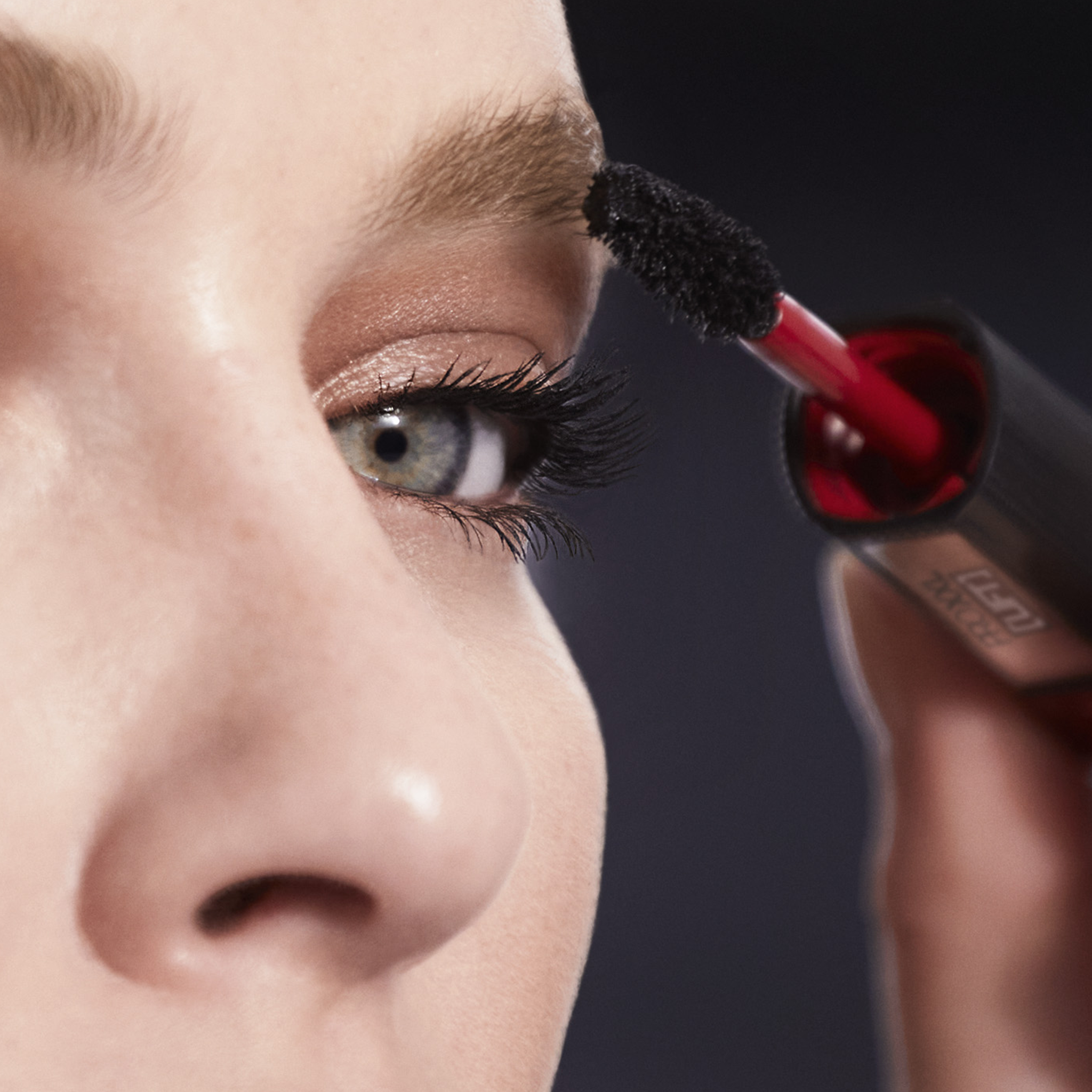 V první fázi zvrchu aplikujte řasenku číslo 1 pro větší objem. Poté řasenku otočte a bezprostředně po první aplikaci naneste druhou vrstvu (řasenka číslo 2). První aplikaci nenechejte zaschnout a kartáček vždy přikládejte ke kořínkům řas a vyčešte je směrem vzhůru.