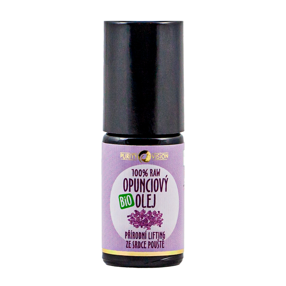 Bio opunciový olej od Purity Vision® je právem považován za účinnou zbraň proti stárnutí pleti a tvorbě vrásek. Své jedinečné vlastnosti získává díky obsahu vitalizujících a regeneračních látek, jakými jsou esenciální mastné kyseliny omega 6 a 9 a velké množství přírodního antioxidantu (vitamín E), který chrání pleť před negativními vlivy volných radikálůi a zpomaluje stárnutí. Olej dále obsahuje aminokyseliny, které podporují tvorbu kolagenu, a urychlují tak regeneraci buněk.