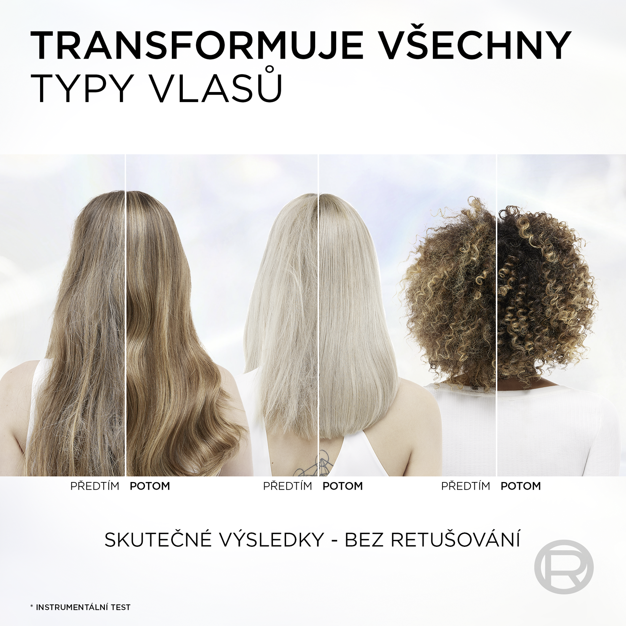 * Instrumentální test po 5 aplikacích před-šamponovou péči + šamponu + balzámu. **Instrumentální test po 6 aplikacích před-šamponovou péči + šamponu + balzámu. ***Instrumentální test před-šamponová péče + šamponu+ balzámu.