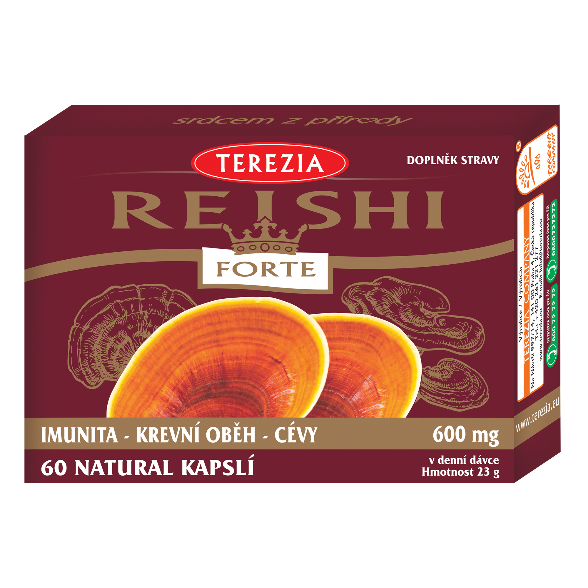 TEREZIA Reishi Forte je 100% houbový přípravek bez příměsí. Obsahuje všechny aktivní látky celé reishi, které působí ve vzájemné harmonii. Reishi podporuje imunitu a příznivě působí na oběhový systém.