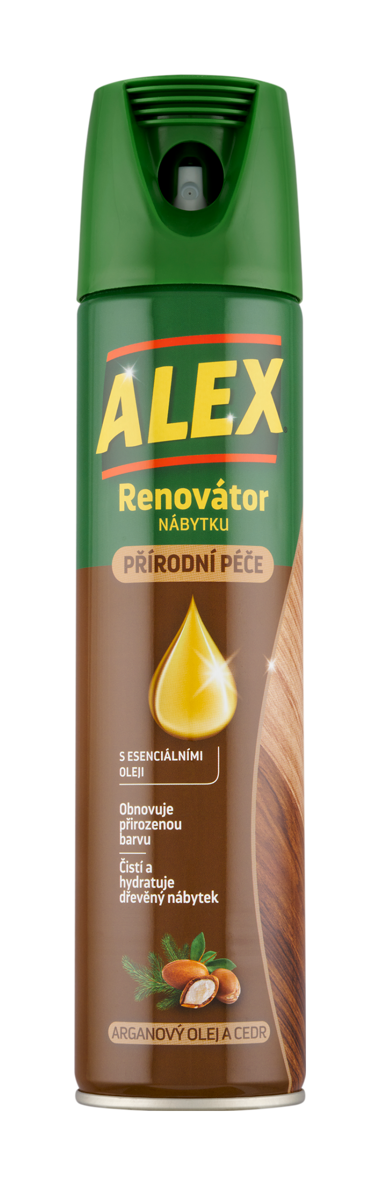ALEX Přírodní péče renovátor na dřevěný a laminátový nábytek kombinuje účinnost a zkušenosti značky ALEX s přínosy esenciálních olejů. Obnovuje přirozenou barvu a vzhled dřeva a čistí a hydratuje váš nábytek.