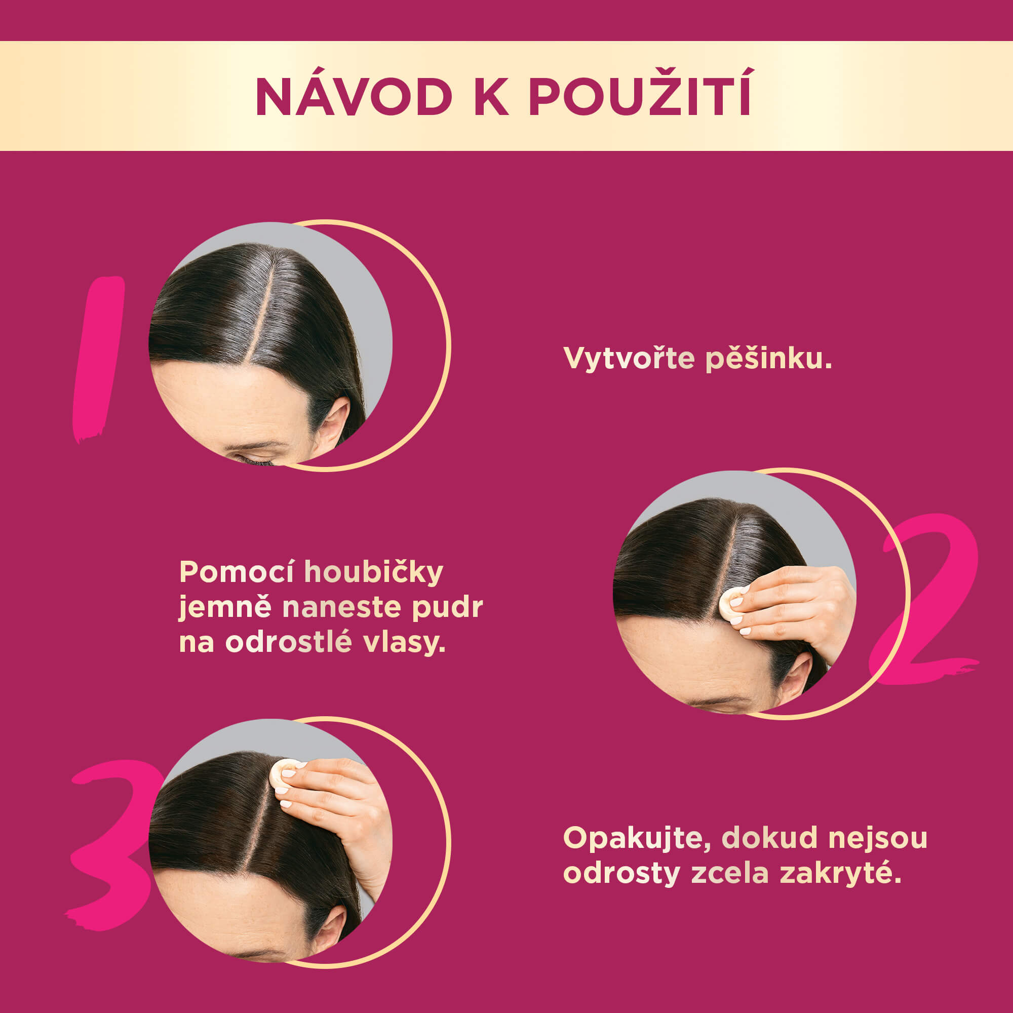 2. Pudr nanášejte na odrostlé části vlasů pomocí houbičky.