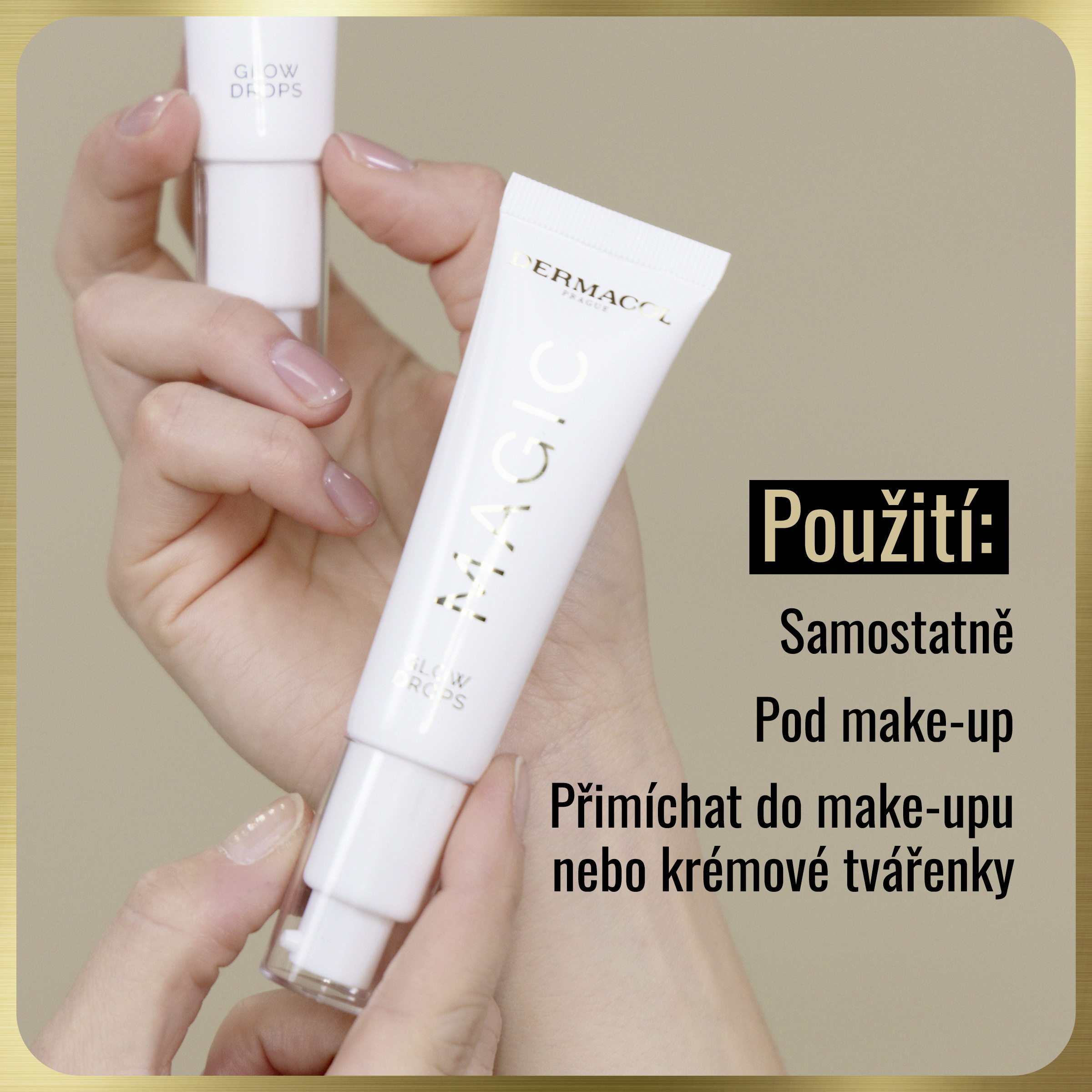 Tekutý rozjasňovač v kapkách pleť rozzáří a intenzívně hydratuje. Lze ho používat na rozjasnění pleti pod make-up, přimíchat dle potřeby do libovolného make-upu, krémové tvářenky, je vhodný pro zvýraznění kontur, nebo lze na pleť nanést samostatně-second skin effect. Rozjasňující lehká emulze s kyselinou hyaluronovou a glycerínem pleť sjednotí, vyhladí a dlouhodobě zlepšuje její kvalitu.