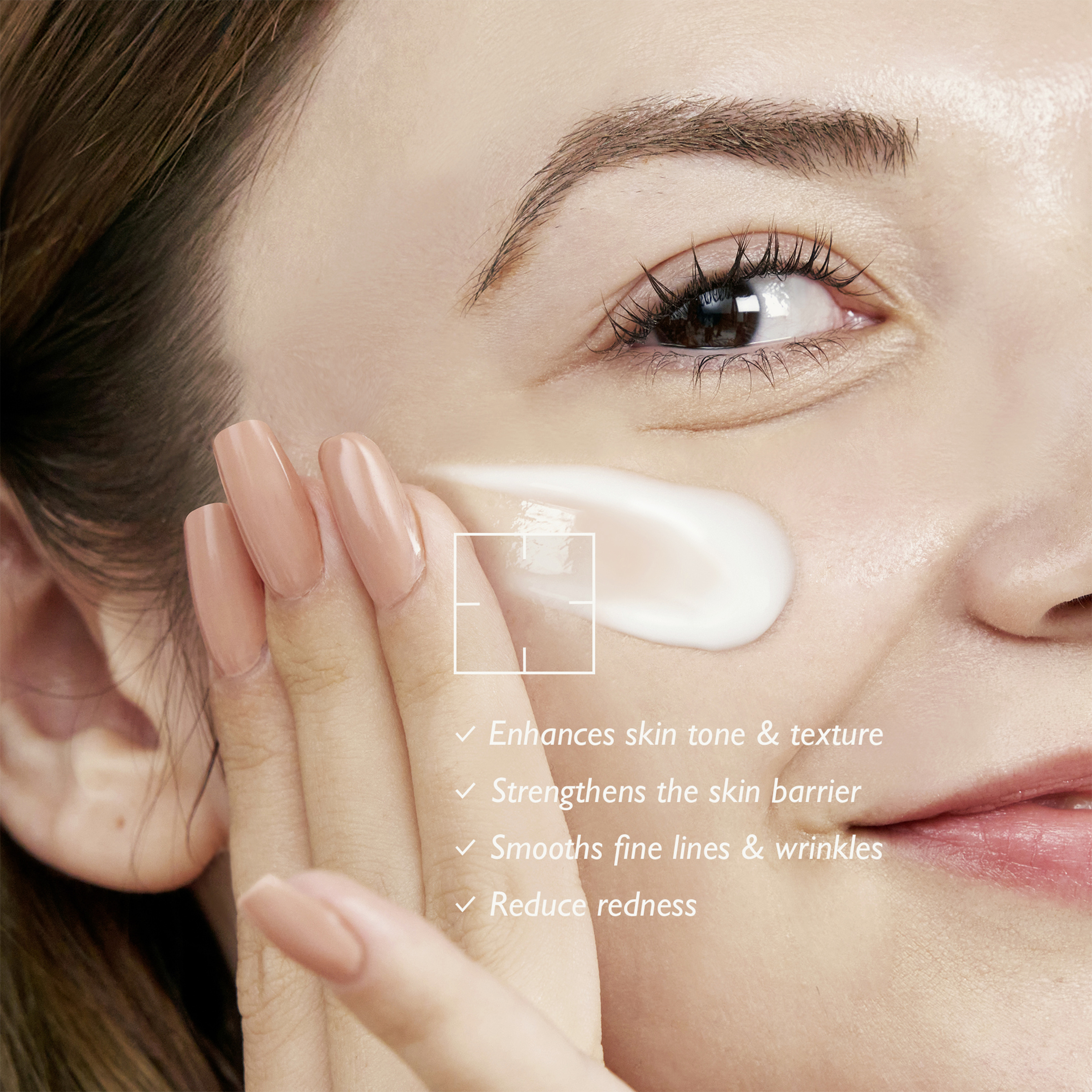 Naneste přiměřené množství krému na obličej a krk. Jemně masírujte a vklepejte konečky prstů pro úplné vstřebání.