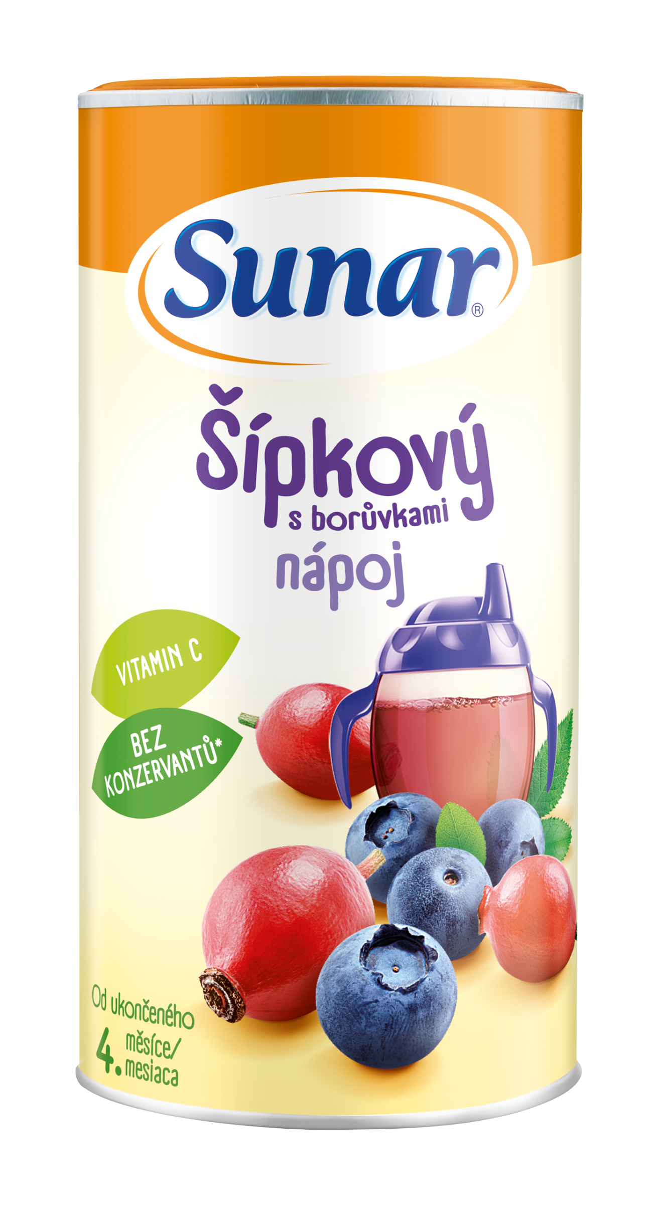 Sunar rozpustný nápoj s příchutí šípku a borůvky je obohacený o vitamin C a neobsahuje žádné konzervační látky ani barviva. Osvěžující instantní nápoj vhodný pro děti od ukončeného 4. měsíce. Sunar instantní nápoj přispívá k dodržování pitného režimu dětí. Je obohacen o vitamin C a neobsahuje konzervační látky a barviva.