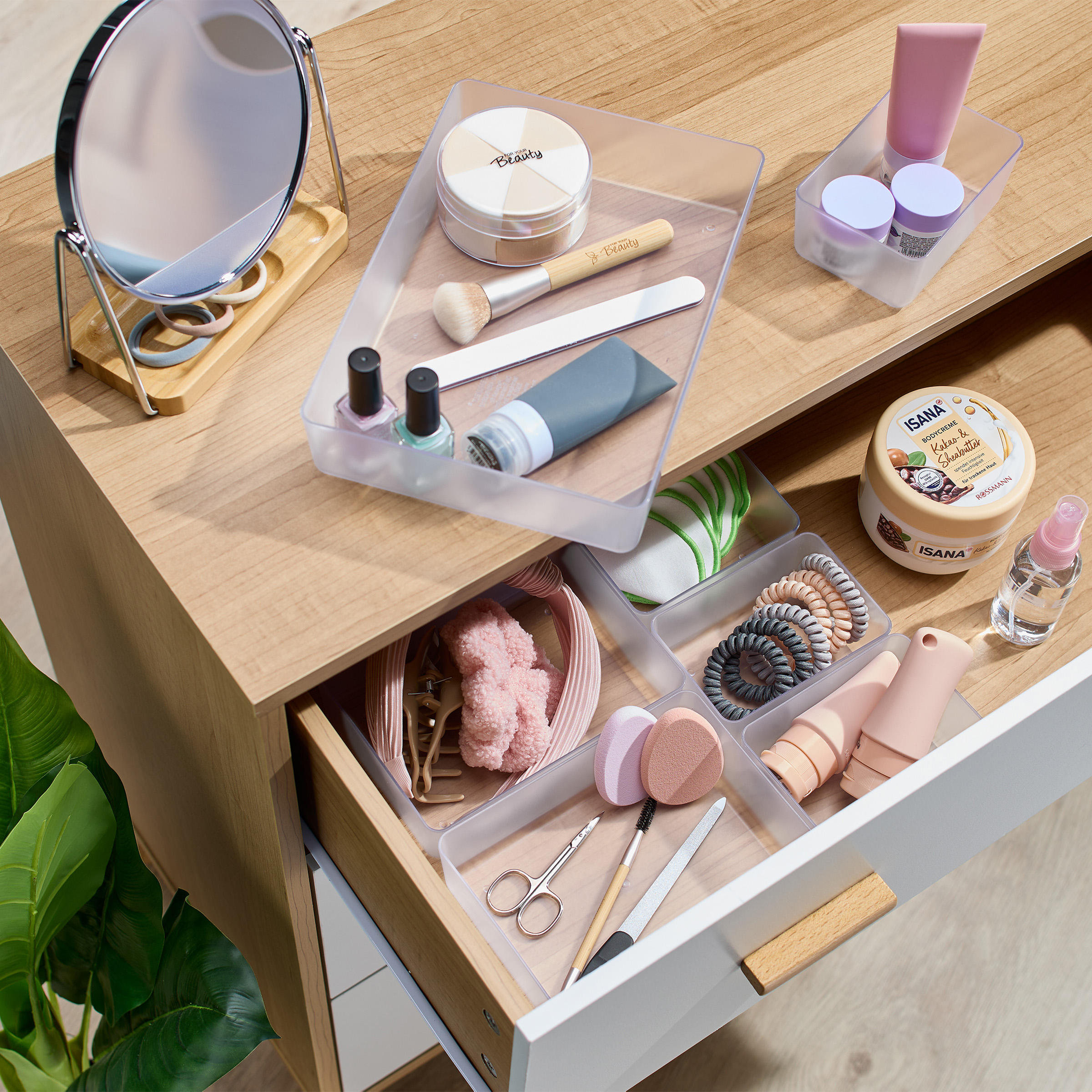 Díky variabilním rozměrům si můžete uspořádání přizpůsobit přesně podle svých potřeb – od příborů a kuchyňských doplňků přes kosmetiku až po psací potřeby. Organizéry lze libovolně kombinovat a přemístit, aniž by bylo nutné šuplík upravovat.