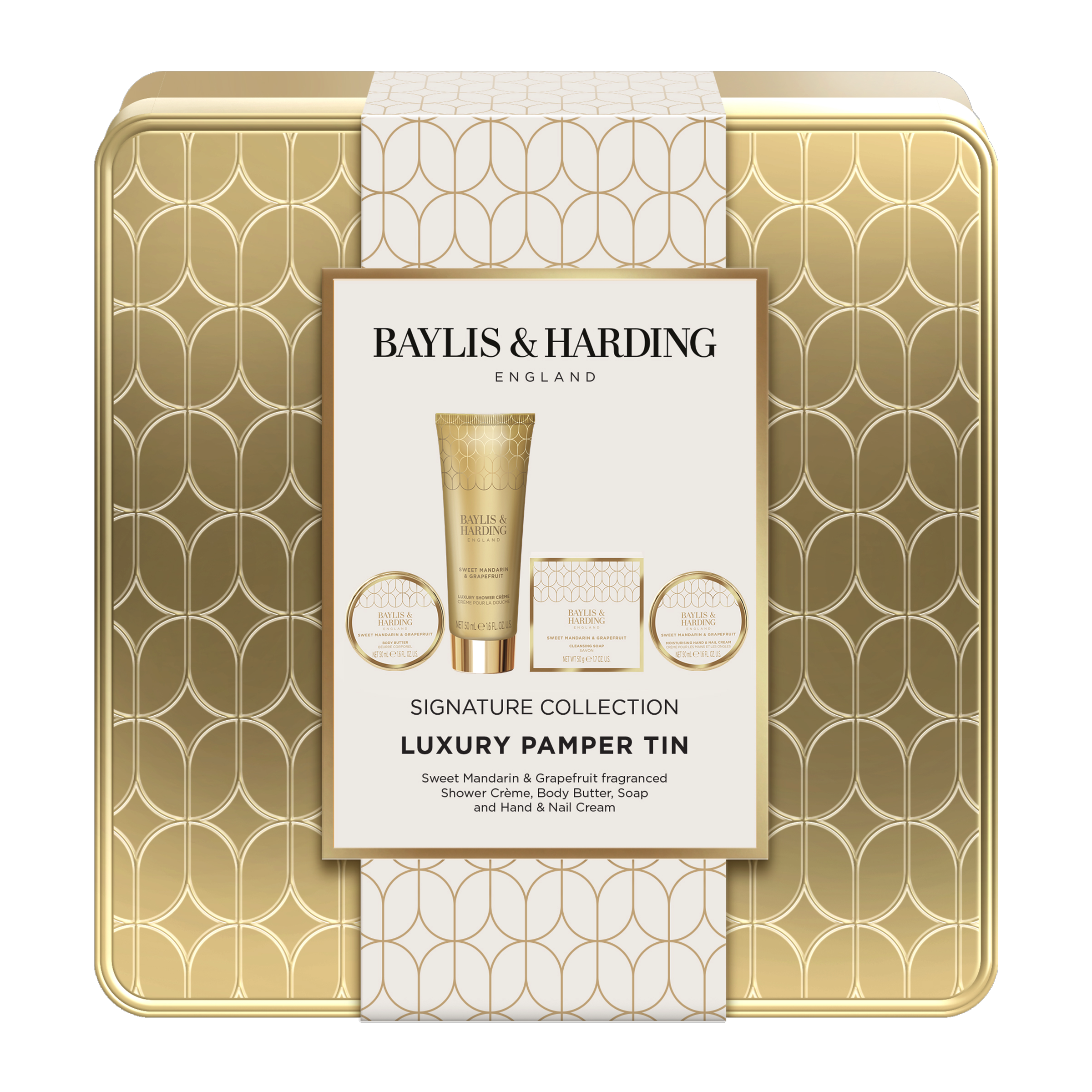 Pečující mini sada pro celé tělo v elegantní plechové dóze potěší každého, kdo si rád dopřeje voňavý rituál s citrusovým osvěžením. Vůně sladké mandarinky, svěžího grapefruitu a jemného jasmínu dodá energii a povzbudí smysly. Sprchový krém a tuhé mýdlo jemně čistí pokožku, zatímco tělové máslo a krém na ruce ji hloubkově hydratují, vyživují a zanechávají hedvábně hebkou. Skvělý tip na dárek i pro každodenní péči.
