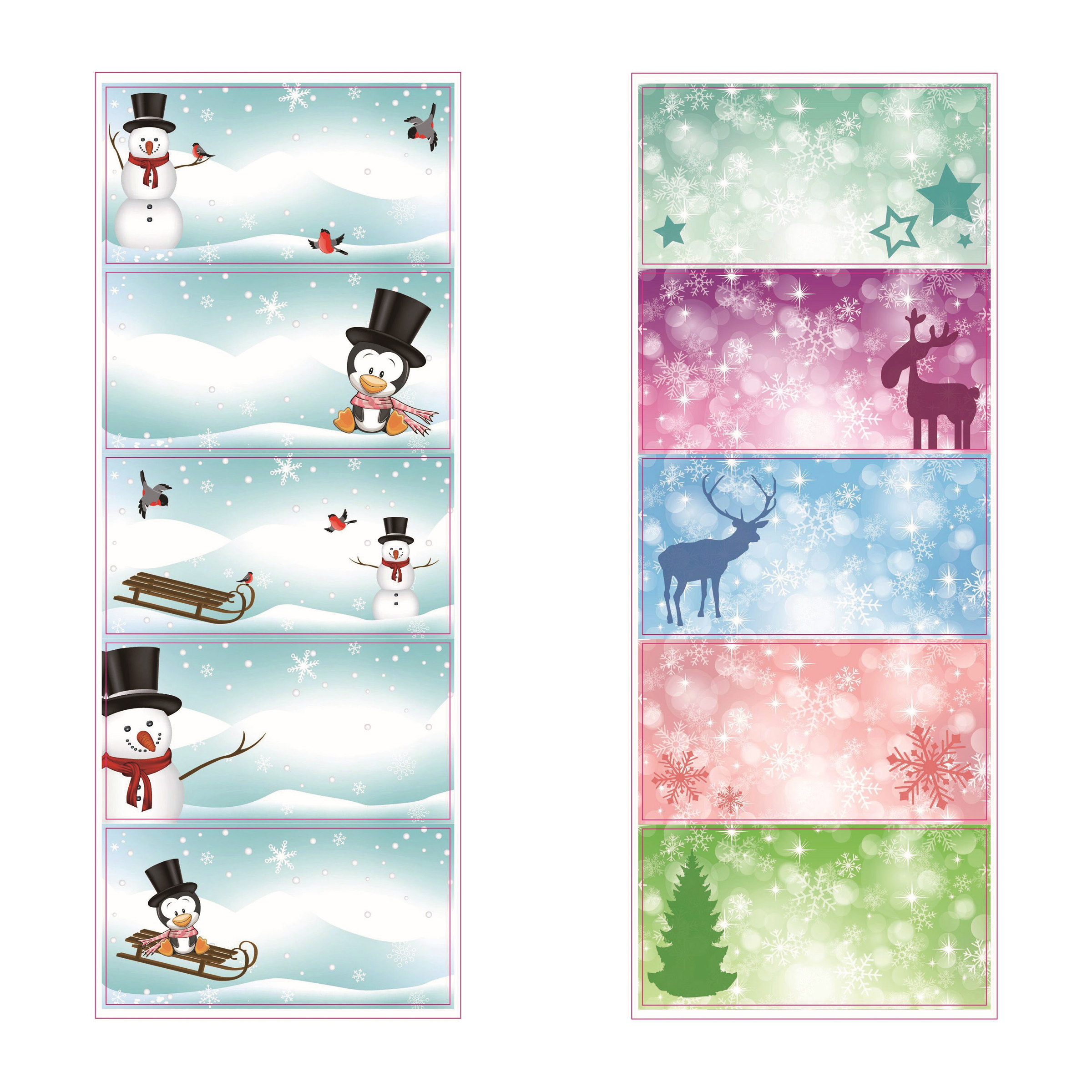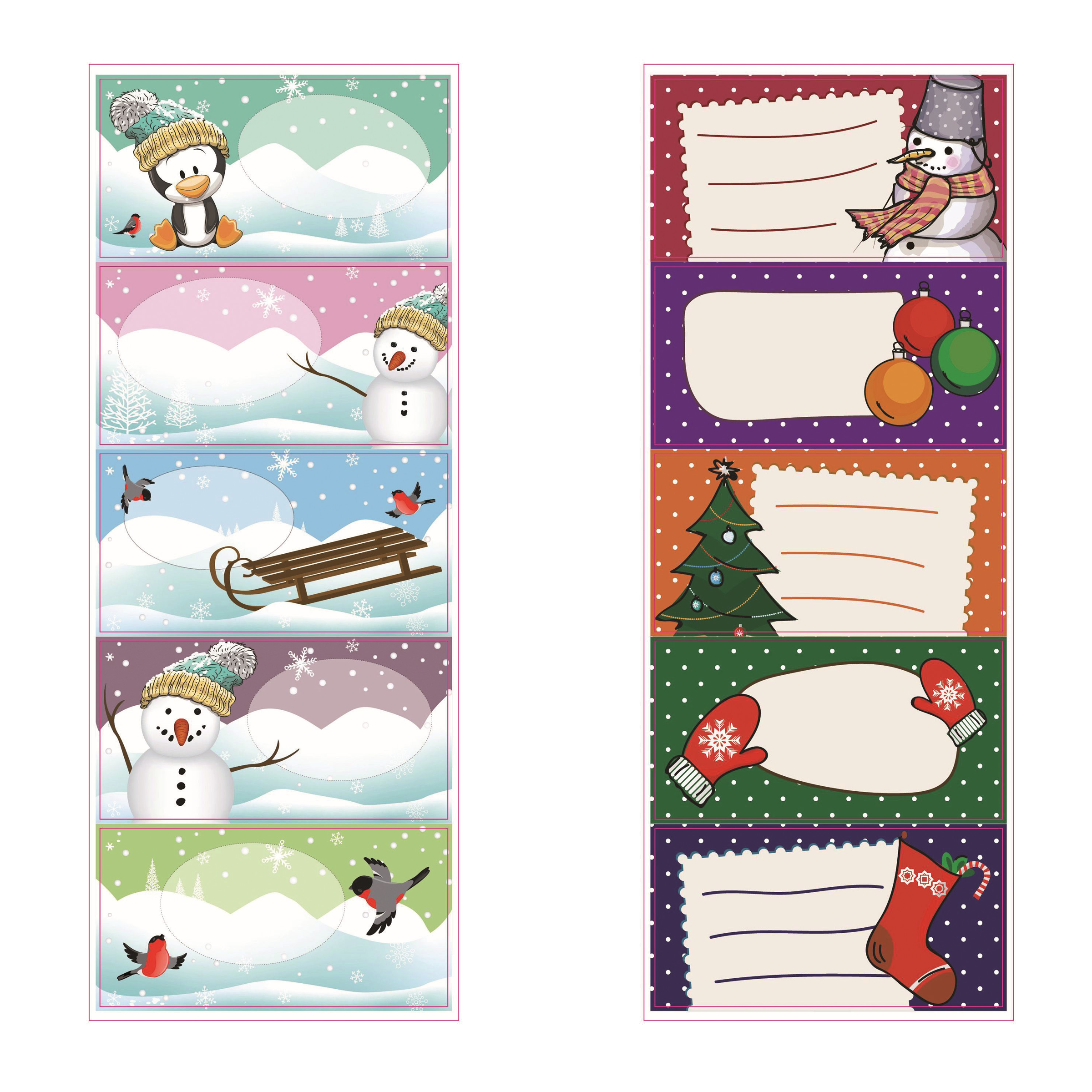 Sada samolepek na vánoční dárky - jmenovky. Sada obsahuje 5 samolepek. 8 druhů. Různé motivy.
