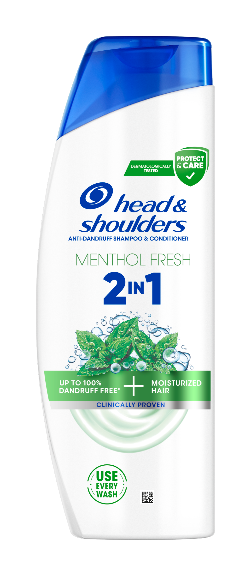 Head & Shoulders 2in1 Menthol šampon proti lupům pro všechny typy vlasů a všechny typy pokožky hlavy. Působí i proti odolným lupům. Šampon pro každodenní použití pro muže i ženy se složením Microbiome Balance, které se zaměřuje na hlavní příčinu lupů a udržuje vyvážený mikrobiom pokožky hlavy. Působí proti viditelným i neviditelným lupům tím, že uvolňuje 2x více ochranných složek, které se dostávají do pórů a brání návratu odolných lupů. Tento šampon 2v1 obsahuje o 25 % více ošetřujících složek než běžný šampon Head & Shoulders, je klinicky ověřený, dermatologicky testovaný a má vyvážené pH.