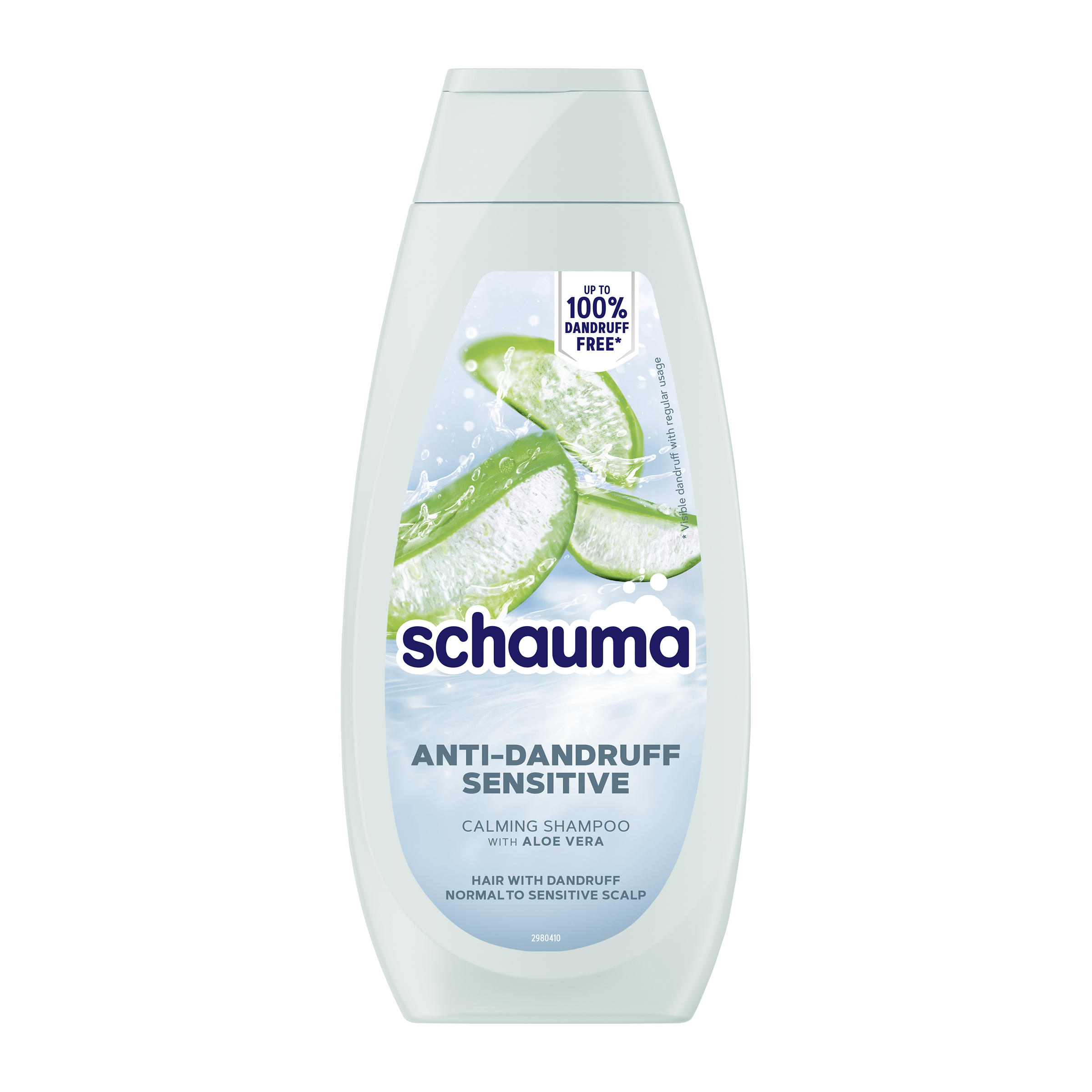 Schauma Anti-Dandruff Sensitive zklidňující šampon s aloe vera na vlasy s lupy, pro normální až citlivou pokožku hlavy. Pro čisté vlasy až 100% bez lupů*. Účinný již po prvním použití. *Viditelné lupy při pravidelném používání.