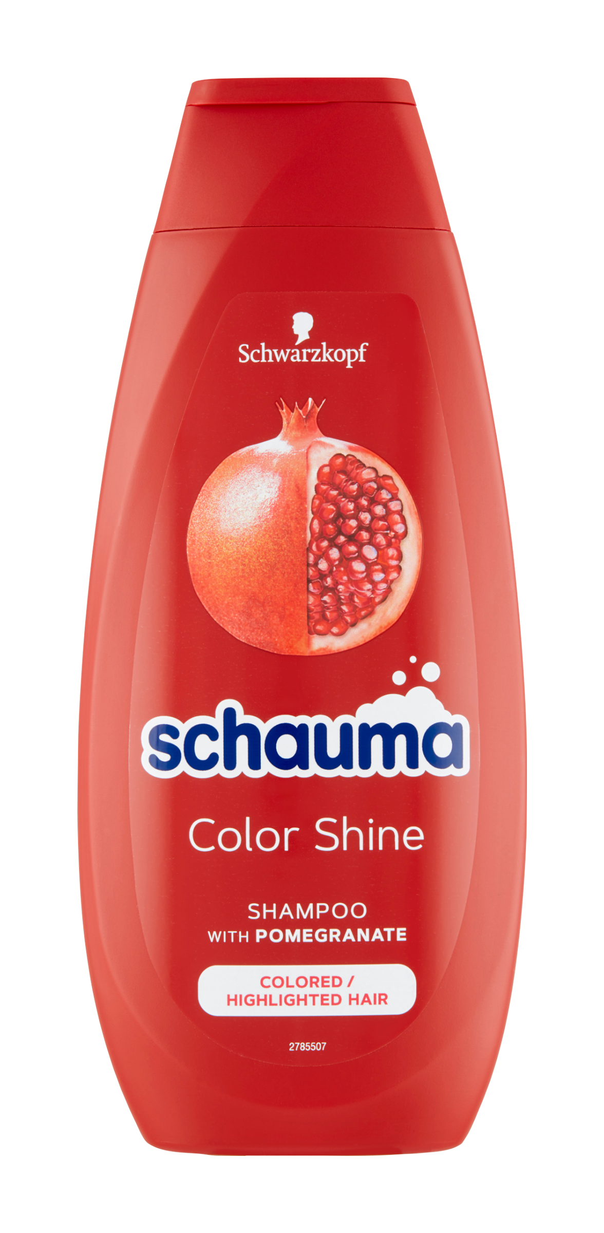 Šampon Schauma Color Shine s granátovým jablkem pro barvené a melírované vlasy. Ahoj! Jsem tvůj šampon a tohle pro tebe dělám: Pečuji o tvé barvené vlasy a poskytuji dlouhotrvající ochranu barvy* a intenzivní lesk. Užij si mé veganské složení** s extraktem z granátového jablka Jsem znovu použitelný: Tělo mé láhve je vyrobeno z 50 % z recyklovaného plastu, zatímco můj uzávěr je již vyroben z 25 % z recyklovaného plastu. Nezapomeňte mě recyklovat! *V kombinaci s balzámem *Bez obsahu živočišných složek