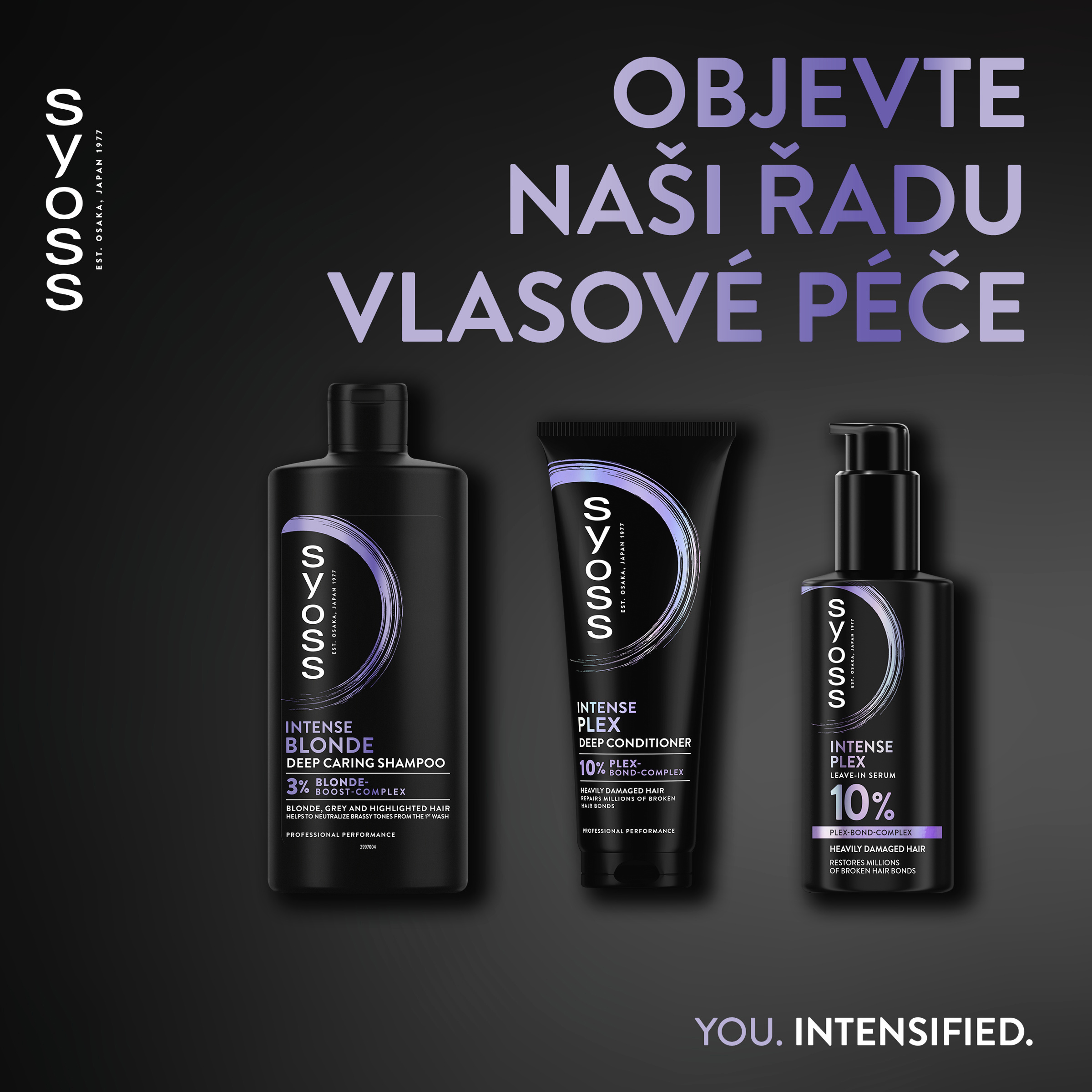 Produkty na vlasy Syoss, s více než 45letou kadeřnickou historií, jsou navrženy pro profesionální výkon. Syoss šampony, kondicionéry, masky a jiné speciální přípravky představují profesionální produkty na vlasy, které hloubkově posilují vlasy zevnitř a zanechávají je krásné a zdravě vypadající. Intenzivnější péče. You intensified.