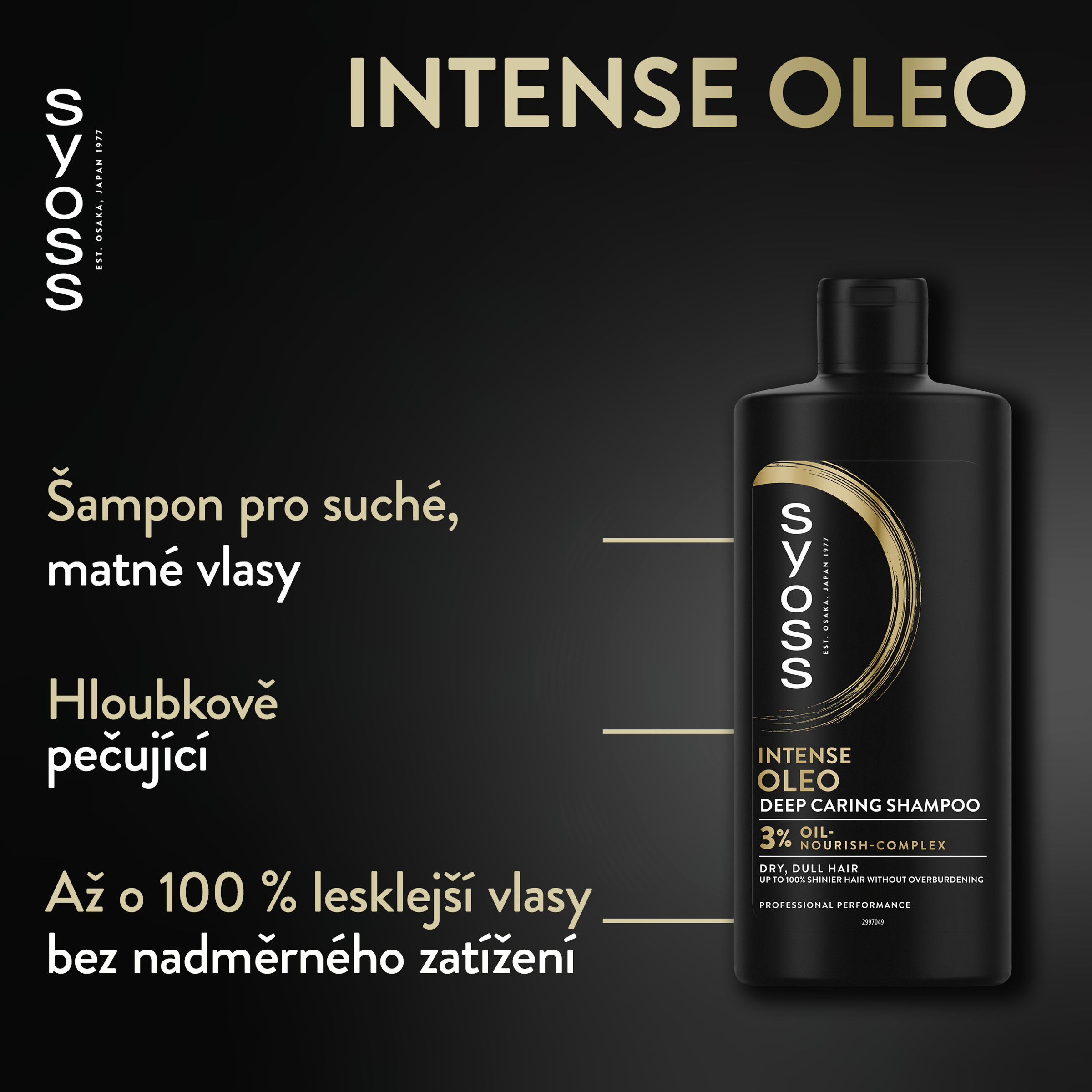 - Lesk & Hladkost: Vlasový šampon Syoss Oleo Intense dodává vlasům 2x více lesku* a hebkost na dotek.