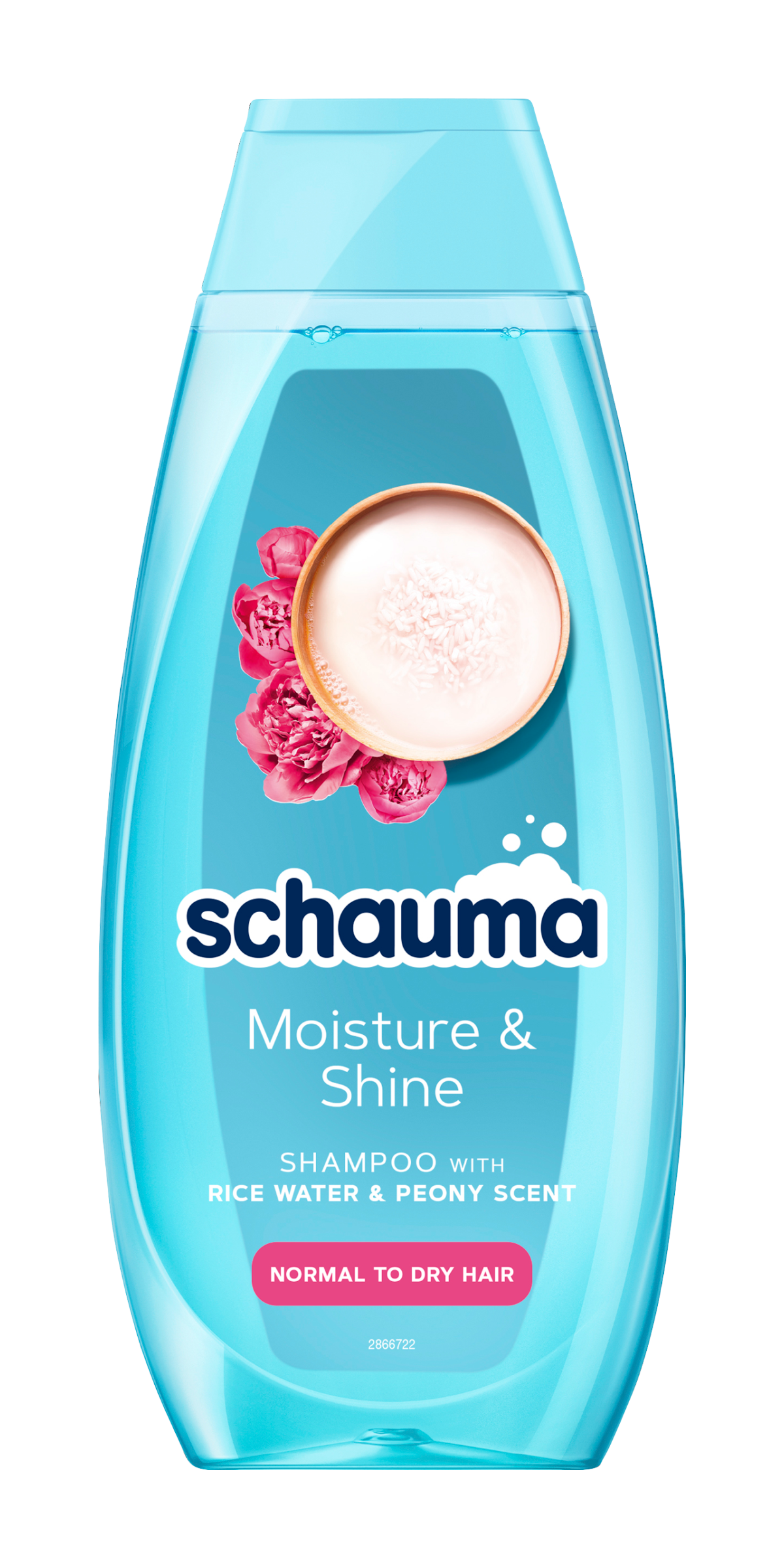 Schauma šampon Moisture & Shine s rýžovou vodou & vůní pivoňky pro normální až suché vlasy. Jemně čistí pokožku hlavy a hloubkově hydratuje vlasy zevnitř pro jejich zářivý a zdravý vzhled.