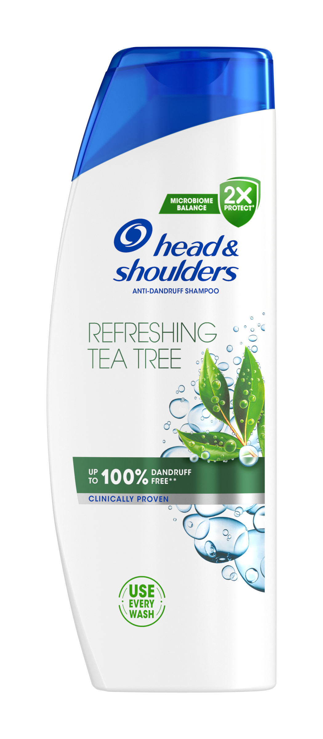 Head & Shoulders Refreshing Tea Tree šampon proti lupům pro všechny typy vlasů a všechny typy pokožky hlavy. Působí i proti odolným lupům. Šampon pro každodenní použití pro muže i ženy se složením Microbiome Balance, které se zaměřuje na hlavní příčinu lupů a udržuje vyvážený mikrobiom pokožky hlavy. Působí proti viditelným i neviditelným lupům tím, že uvolňuje 2x více ochranných složek, které se dostávají do pórů a brání návratu odolných lupů. Má klinicky ověřené, dermatologicky testované složení s vyváženým pH, které zanechává pokožku hlavy a vlasy čisté a svěží.