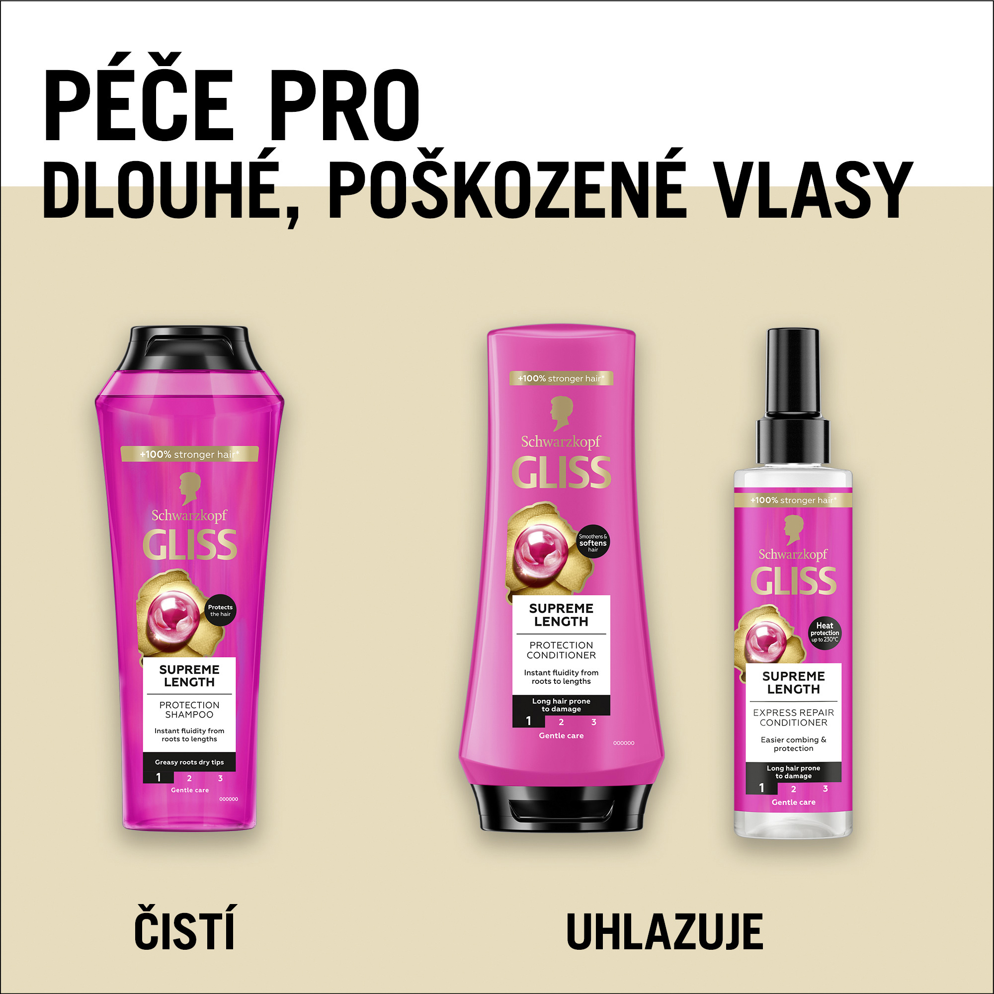 - Supreme Length: Tento šampon dlouhé vlasy je určen k regeneraci a ochraně před lámáním a zároveň podporuje, zlepšuje a udržuje kvalitu dlouhých vlasů