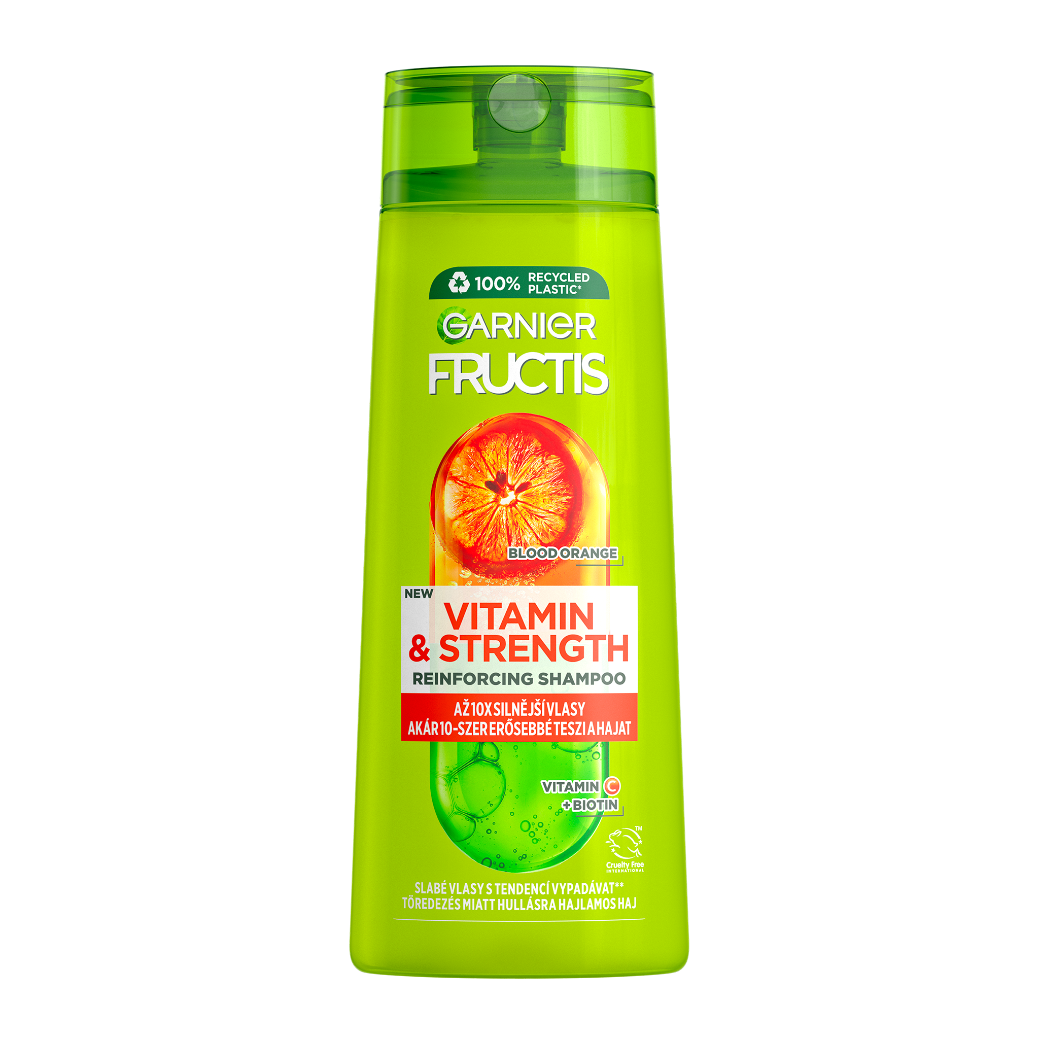 Šampon obohacený i biotin, vitamin C*** a červený pomeranč obaluje vlasové vlákno a tím ho posiluje a snižuje vypadávání vlasů**. Pro snadno rozčesatelné a viditelně zdravější vlasy. **kvůli lámavosti
