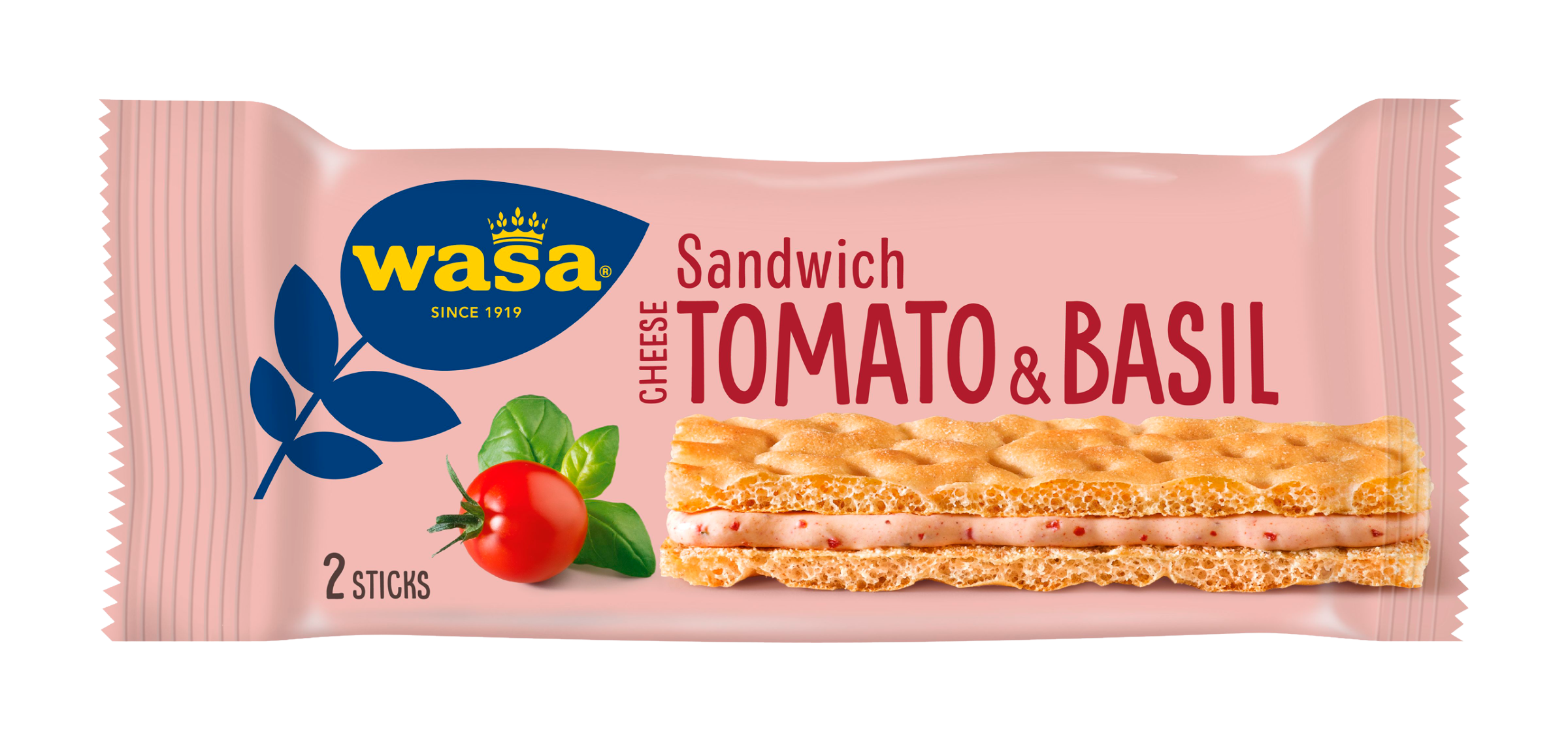 Pšeničné knäckebroty s náplní se sýrovou příchutí, rajčaty a bazalkou. Křupavá slaná svačinka, kterou si můžete vzít kamkoliv sebou. Ať už do práce, do školy, na výlet a nebo si pochutnat jen tak doma. Balení obsahuje dvě sendvičové tyčinky - perfektní svačina, kterou si vezmete kamkoliv s sebou!