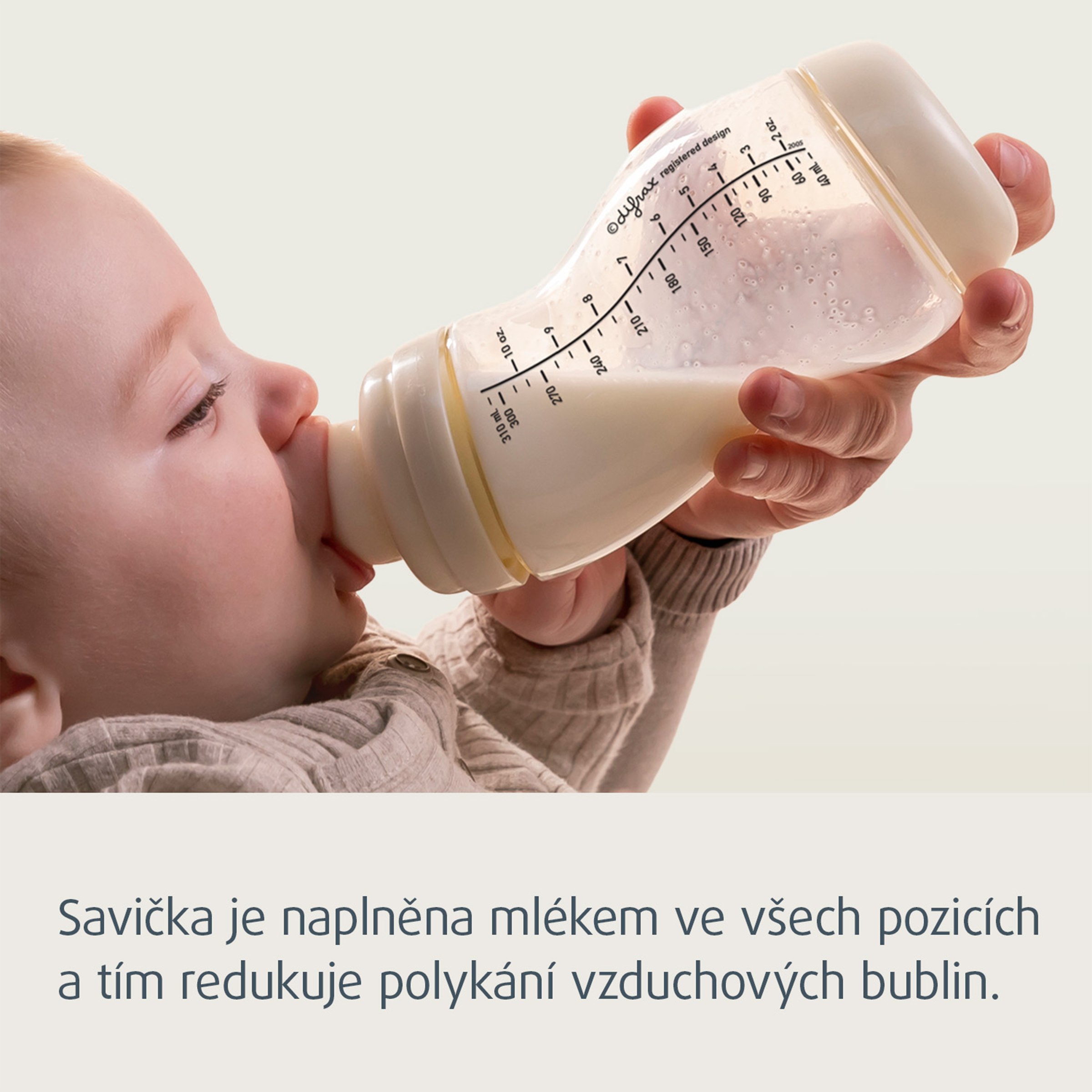 Buďte obzvláště opatrní při ohřevu v mikrovlnné troubě. Ohřáté mléko vždy promíchejte, aby se teplota rovnoměrně rozložila, a před podáváním teplotu zkontrolujte. Pokud ohřívat mléko v mikrovlnné troubě, nezapomeňte, že lahev musí být otevřená. Výrobek by se neměl vkládat do předehřáté trouby ani ohřívat v plynovém či elektrickém sporáku. Nenechávejte savičku na krmení na slunném nebo horkém místě nebo v dezinfekčních prostředcích („sterilizační roztok“) déle, než je doporučeno, mohlo by dojít k oslabení savičky. Z bezpečnostních a hygienických důvodů se doporučuje každé 2 měsíce vyměnit savičku za novou.