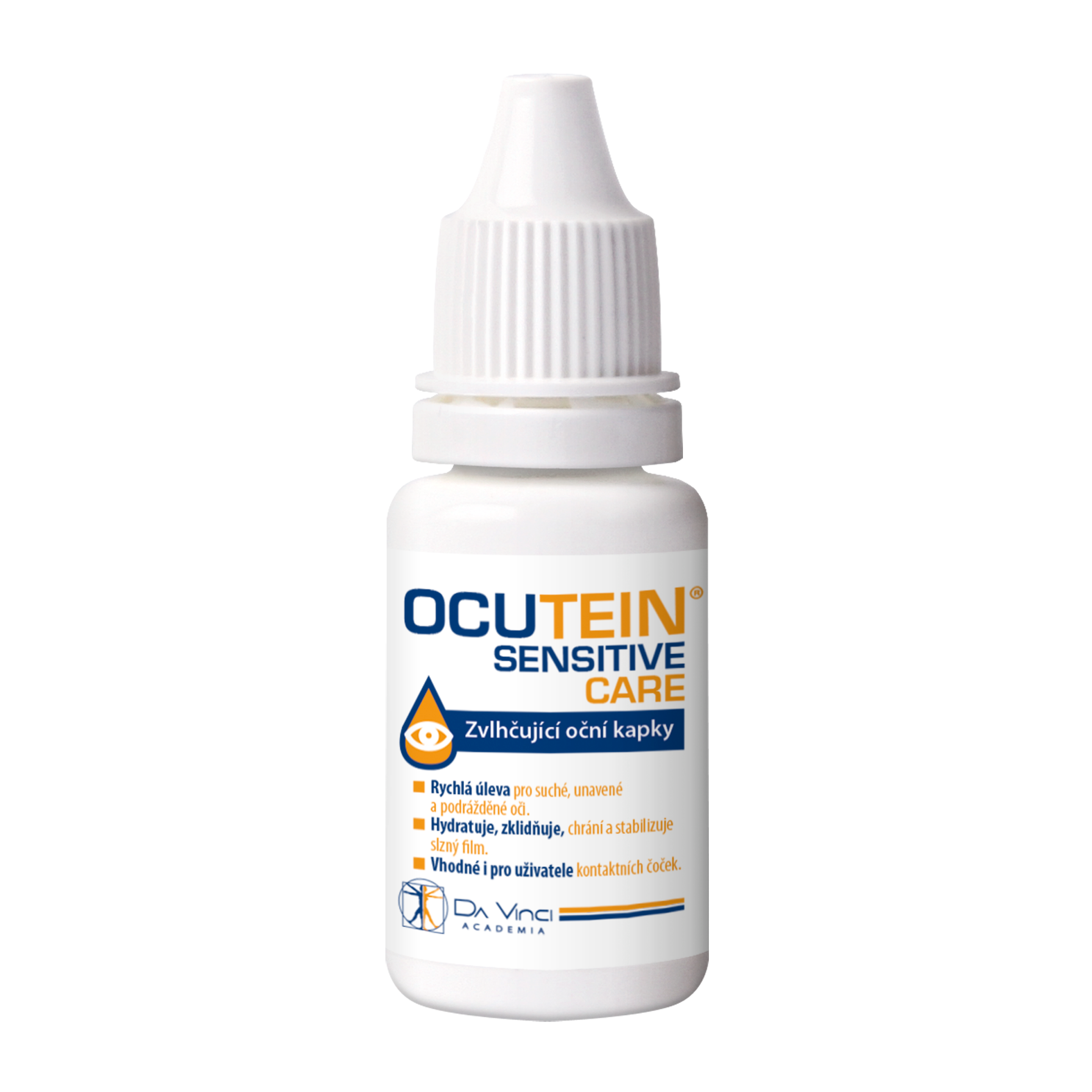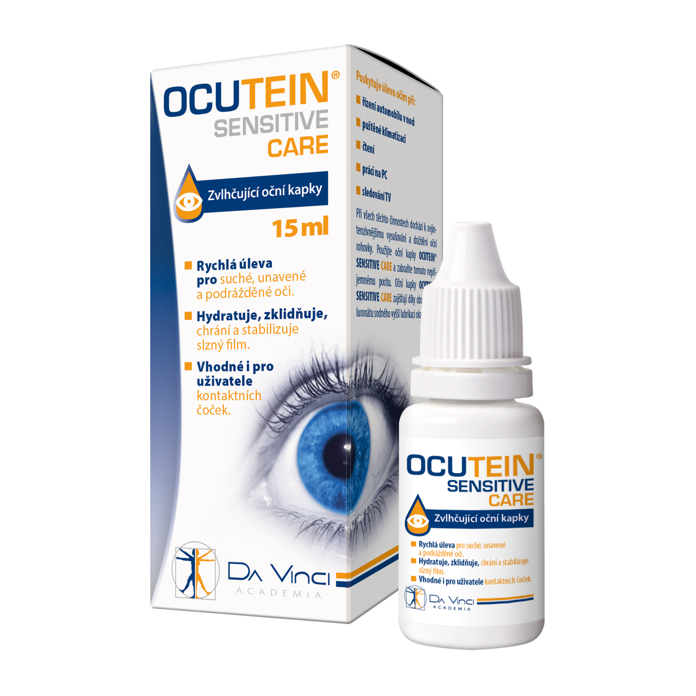 Při všech těchto činnostech dochází k nejintenzivnějšímu vysušování a dráždění oční rohovky. Oční kapky OCUTEIN® SENSITIVE CARE zajišťují díky obsahu hyaluronátu sodného vyšší lubrikaci oka. Jsou vhodné i pro velmi citlivé oči. Lze aplikovat přímo na nasazené kontaktní čočky. Vysoký objem (15 ml), dlouhá doba použitelnosti (90 dní po prvním otevření). Zdravotnický prostředek.