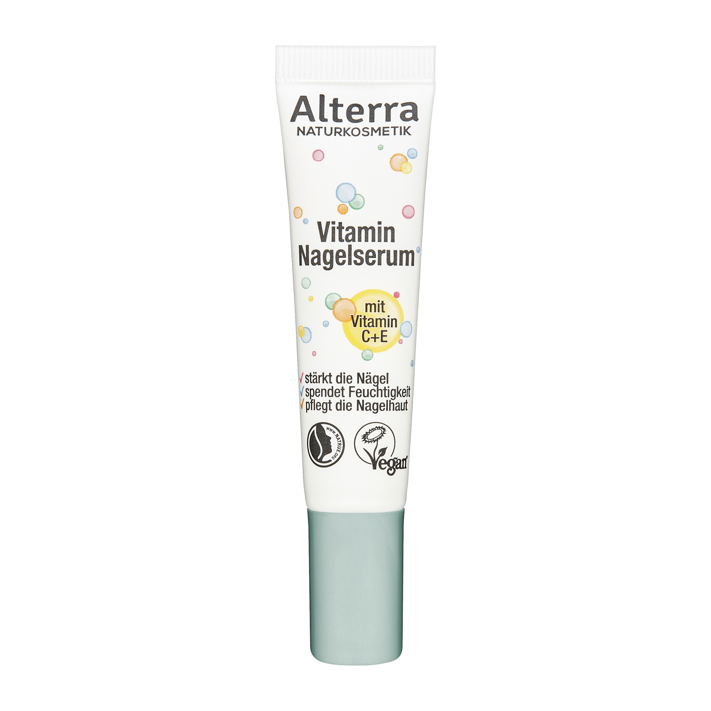 Vitamínové sérum na nehty Alterra intenzivně pečuje o ruce, nehty a nehtovou kůžičku. Složení s organickým olejem z meruňkových jader a bambuckým máslem regeneruje a dodává cennou hydrataci díky vitaminu C a vitaminu E a chrání před dehydratací.