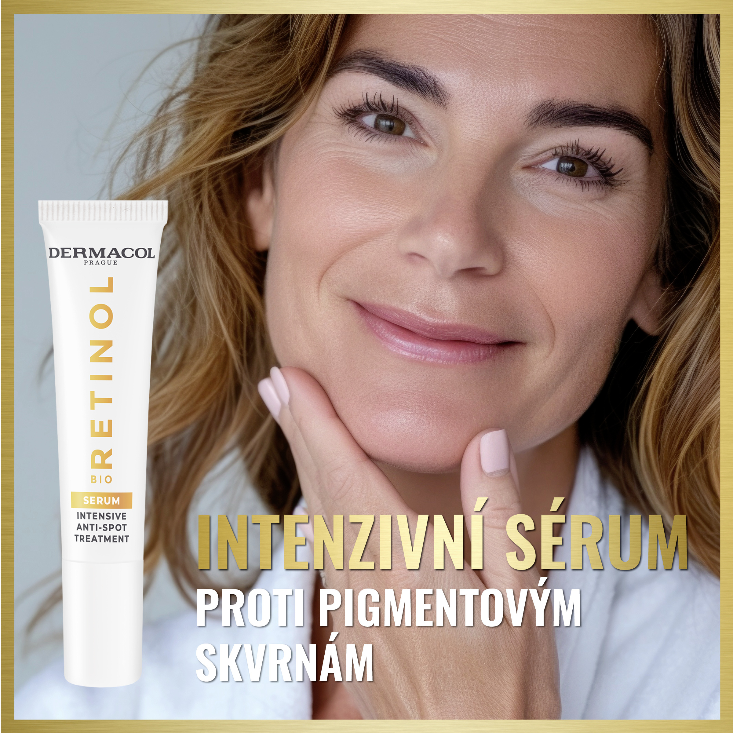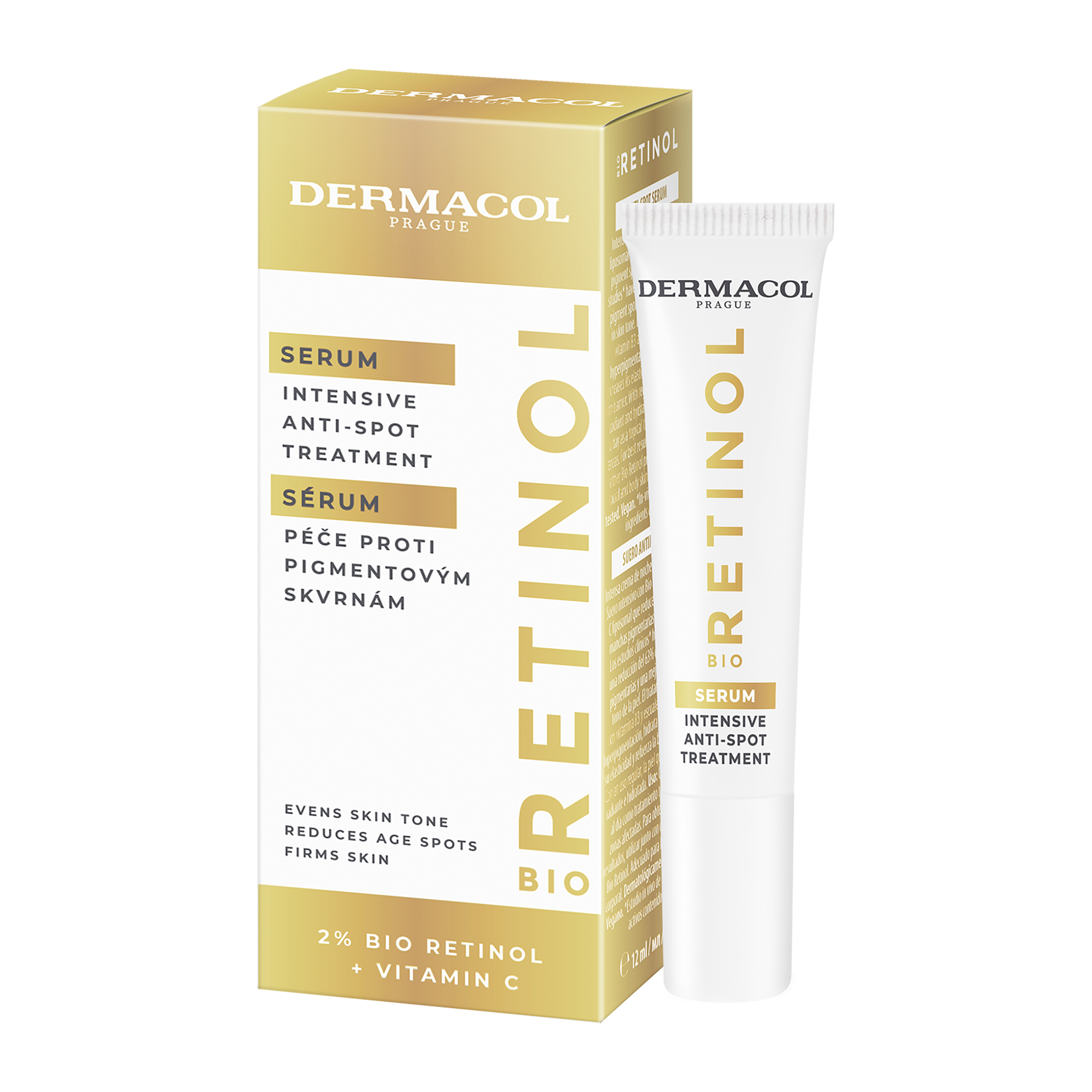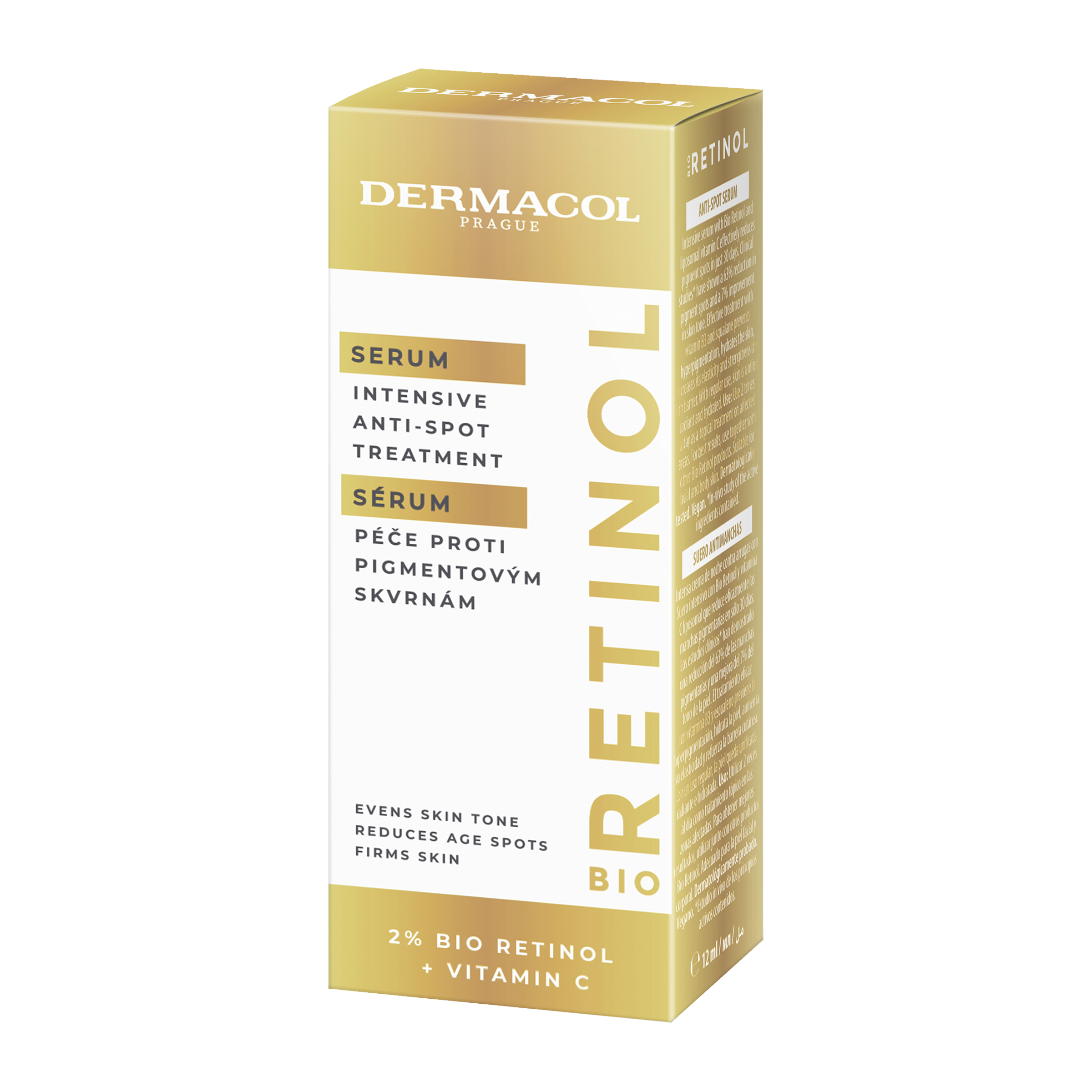 Intenzivní a velmi účinná řada Bio Retinol eliminuje známky stárnutí pleti. Bio Retinol sérum zesvětluje pigmentové skvrny a zabraňuje její hyperpigmentaci. Intenzivní sérum s Bio Retinolem a lipozomálním vitaminem C účinně redukuje pigmentové skvrny již za 30 dní. Účinná péče s vitaminem B3 a squalanem pokožku hydratuje, zvyšuje její pružnost a posiluje kožní bariéru. Sérum proti pigmentovým skvrnám účinně bojuje proti vzniku tmavých skvrn způsobených stárnutím pokožky a působením UV záření. Má svěží texturu, která se velmi rychle vstřebá. Pravidelným používáním je pleť sjednocená, zářivá a hydratovaná.