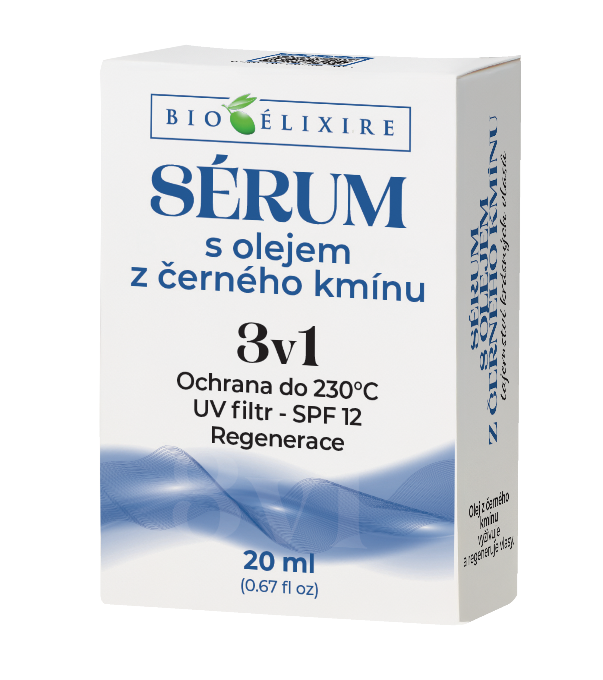 Regenerační vlasové sérum s olejem z černého kmínu, které má tepelné ochranné vlastnosti. Dodává vlasům vitalitu, elasticitu, hladkost a lesk. Chrání před negativními účinky vysokoteplotních stylingových nástrojů. Chrání konečky před lámáním a regeneruje strukturu vlasu. Olej z černého kmínu obsahuje omega-3, 6 a 9 mastné kyseliny, vitamíny A a E, biotin, antioxidanty a thymochinon. Složení séra je také obohaceno o malachit a UV filtr.