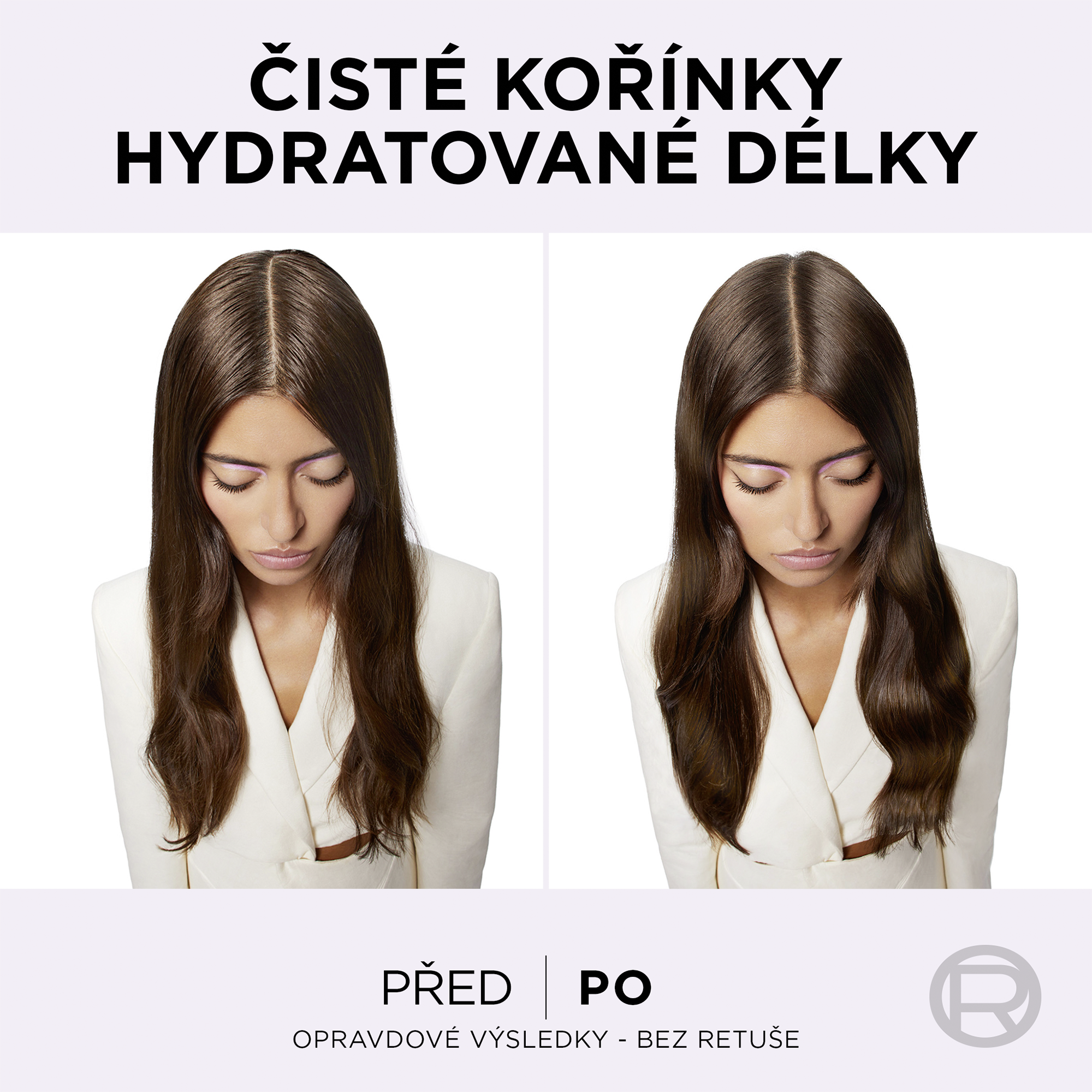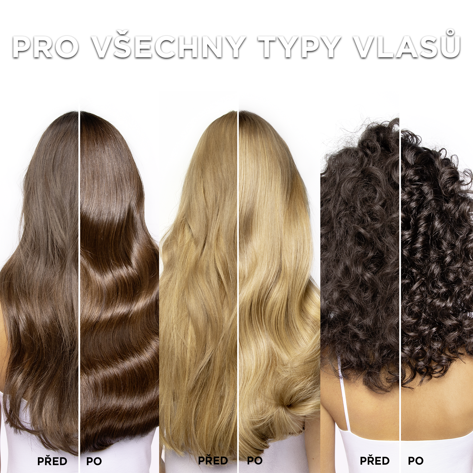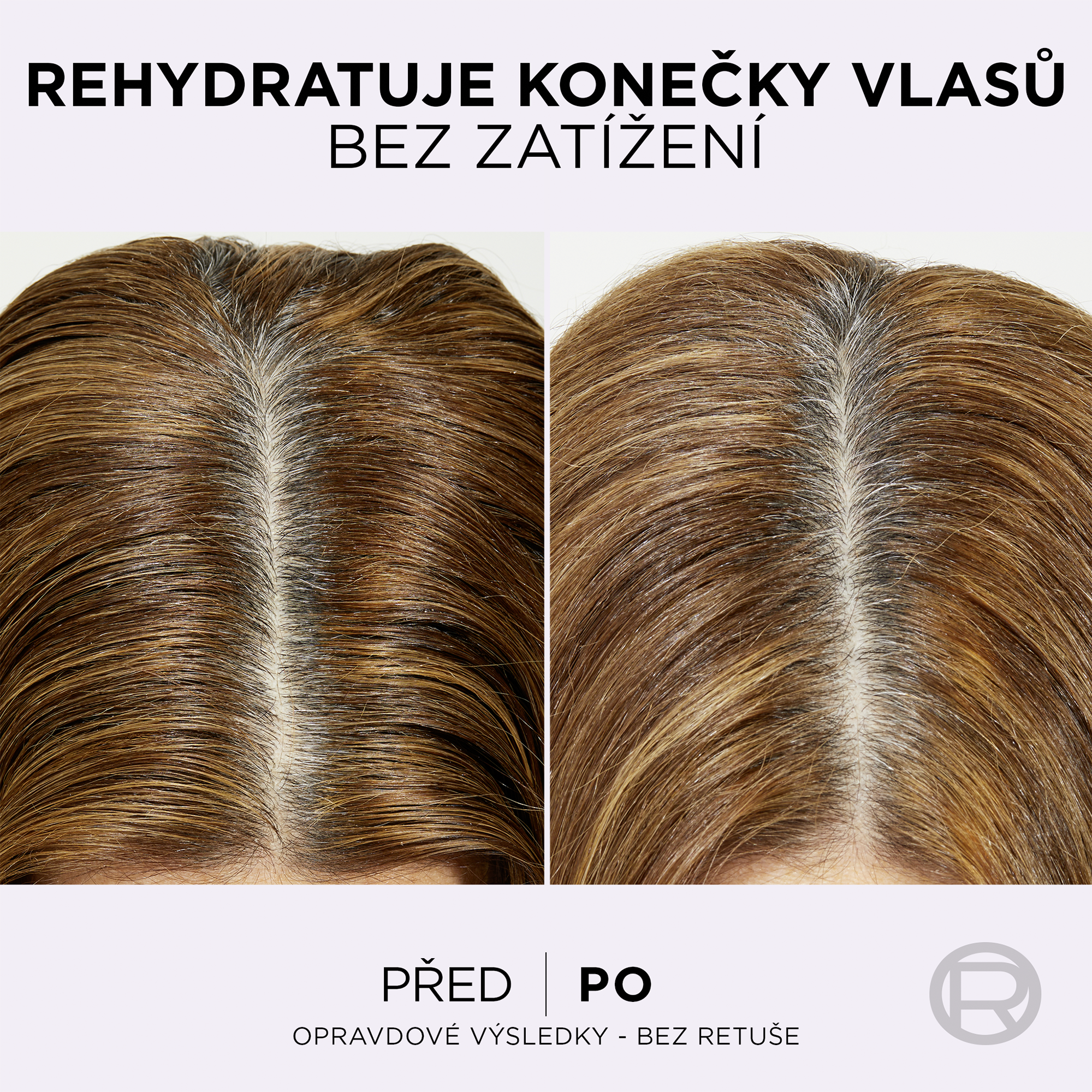 Rozdělte suché vlasy na sekce, aplikujte sérum přímo na pokožku hlavy dle potřeby, masírujte po dobu 5 minut a nechte 15 minut působit. Pokračujte s čištícím Hyaluron Pure šamponem a rehydratačním balzámem.