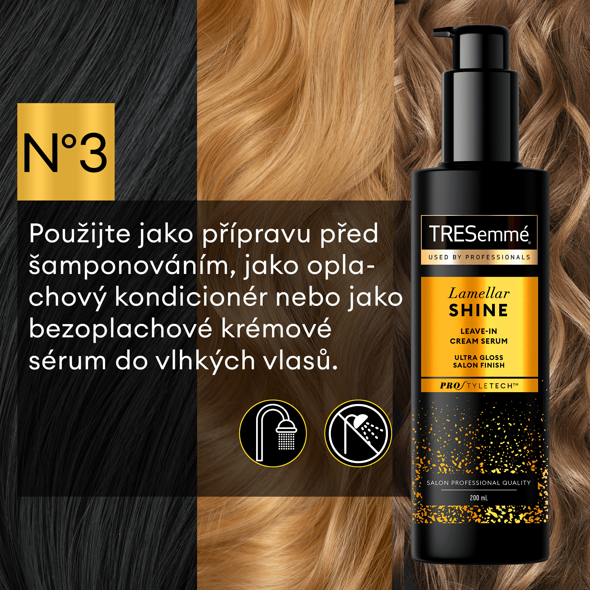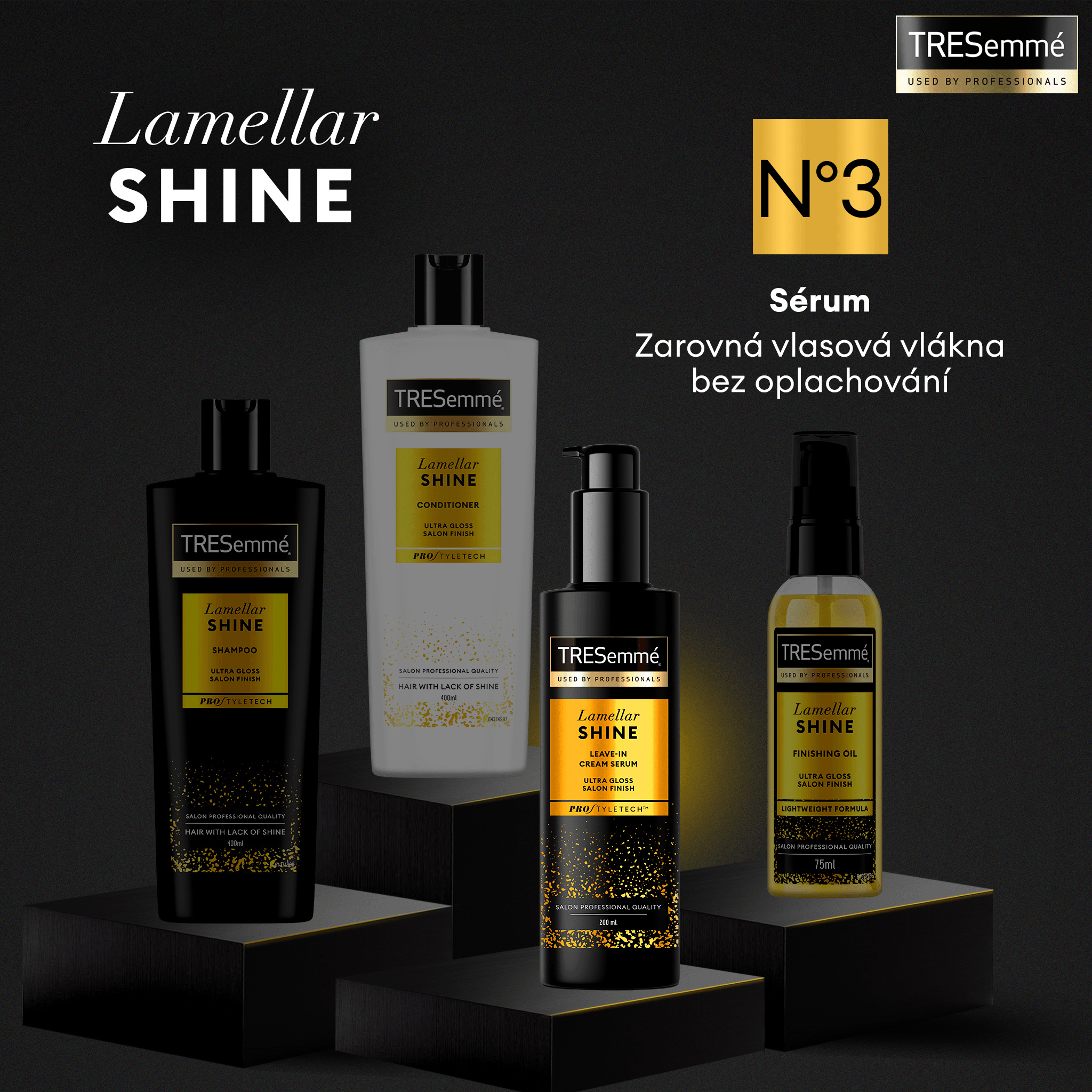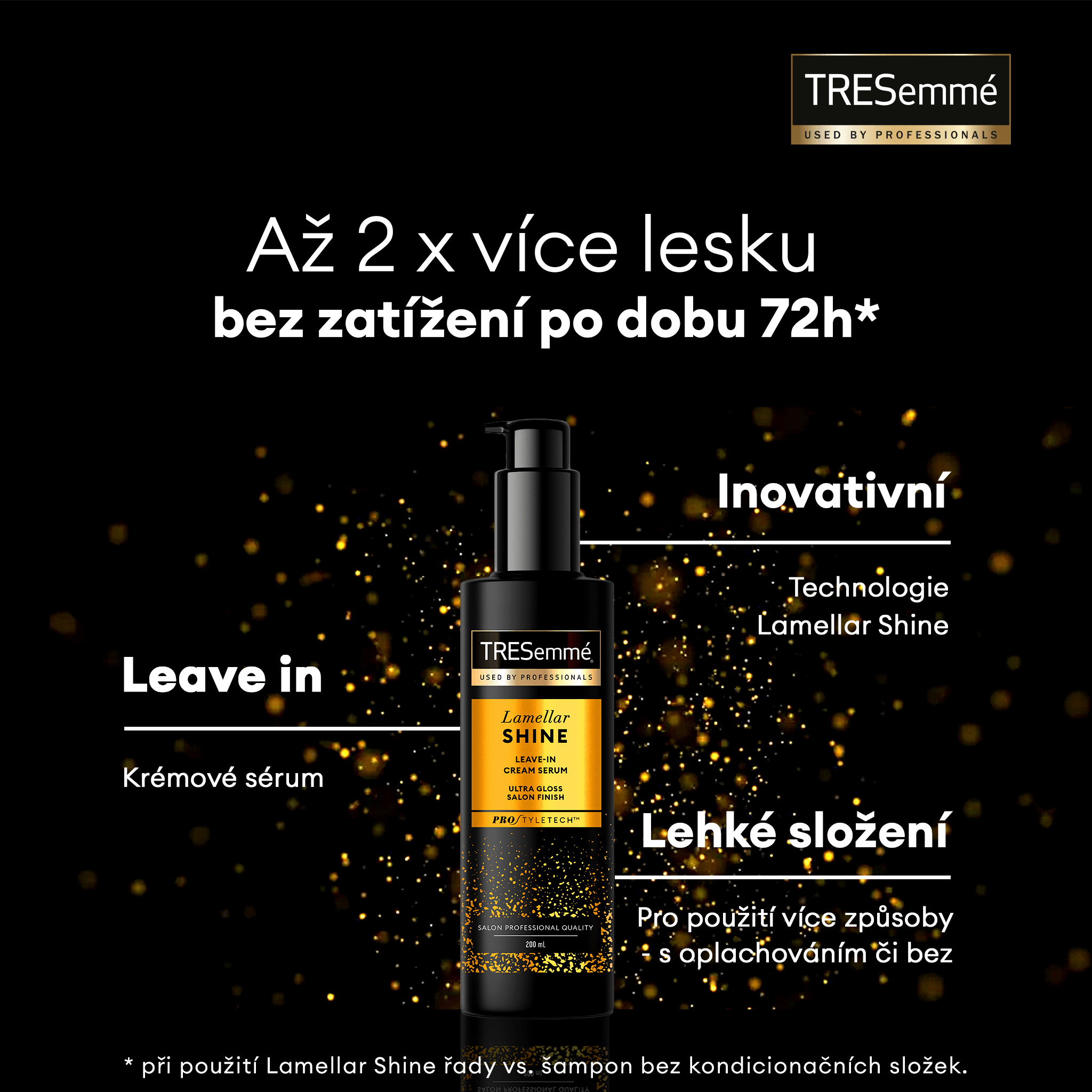 *) Při použití řady TRESemmé Lamellar shine vs. šampon bez kondicionačních složek.