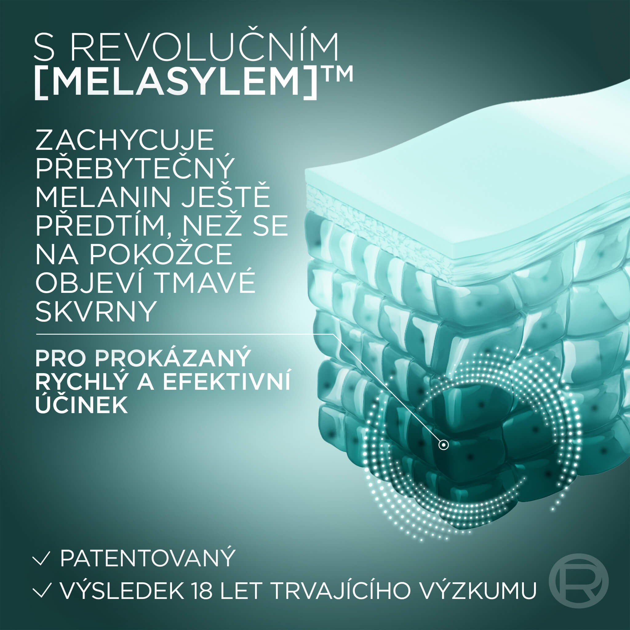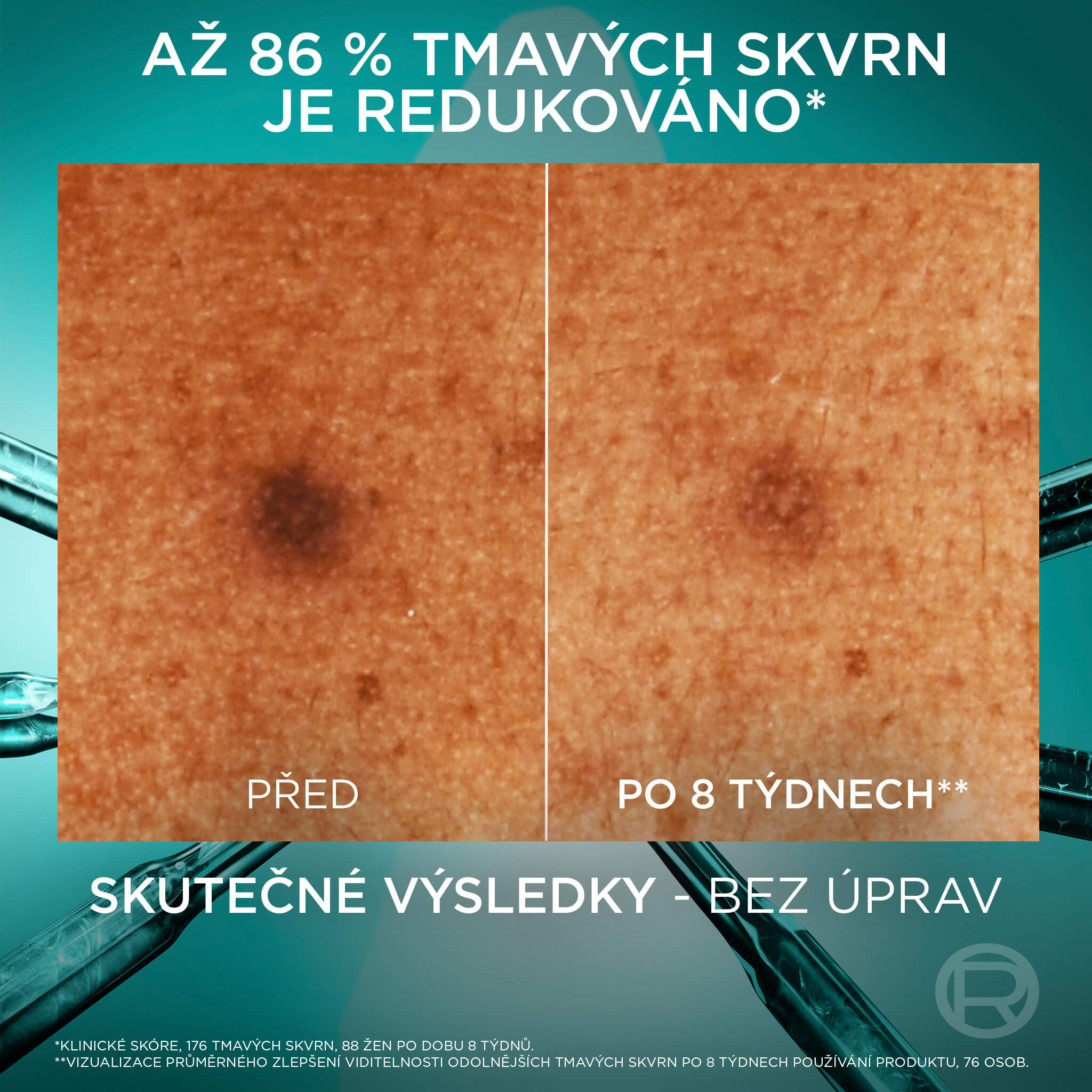 Všechny typy tmavých skvrn jsou viditelně vybledlé. Zlepšuje se jas pleti.
