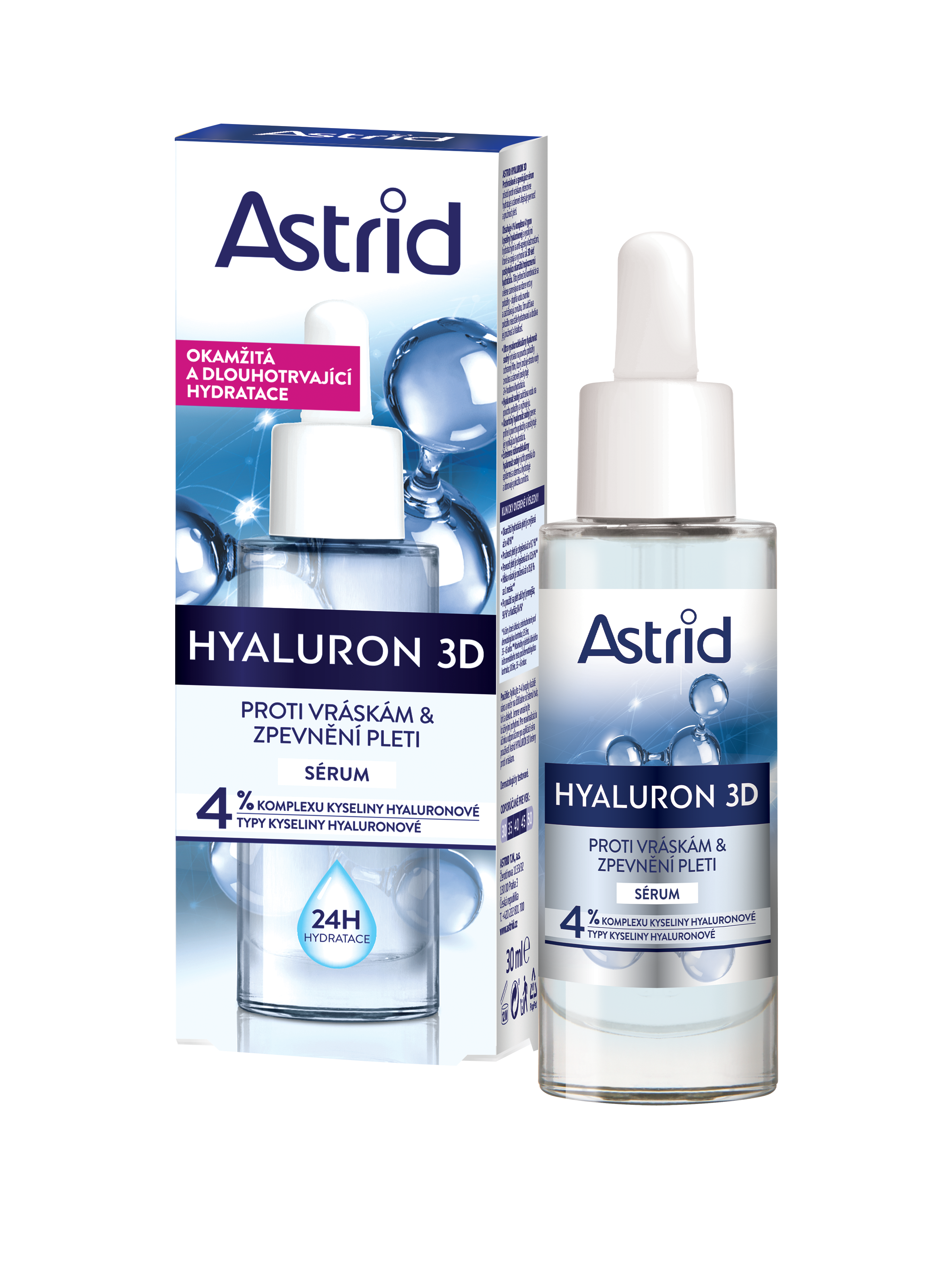 Protivráskové a zpevňující pleťové sérum působí proti vráskám, intenzivně hydratuje a zároveň zlepšuje pevnost a pružnost pleti. Obsahuje 4 % komplexu 4 typů kyseliny hyaluronové s vysokými hydratačními a anti-ageing vlastnostmi, které se spojí a vytvoří tak 3D síť poskytující okamžitou trojrozměrnou hydrataci. Tato jedinečná kombinace se cíleně zaměřuje na různé vrstvy pokožky - doplňuje vodu zvenčí a zadržuje ji zevnitř, udržuje tak pokožku neustále hydratovanou a dodává jí pružnost a hladkost.