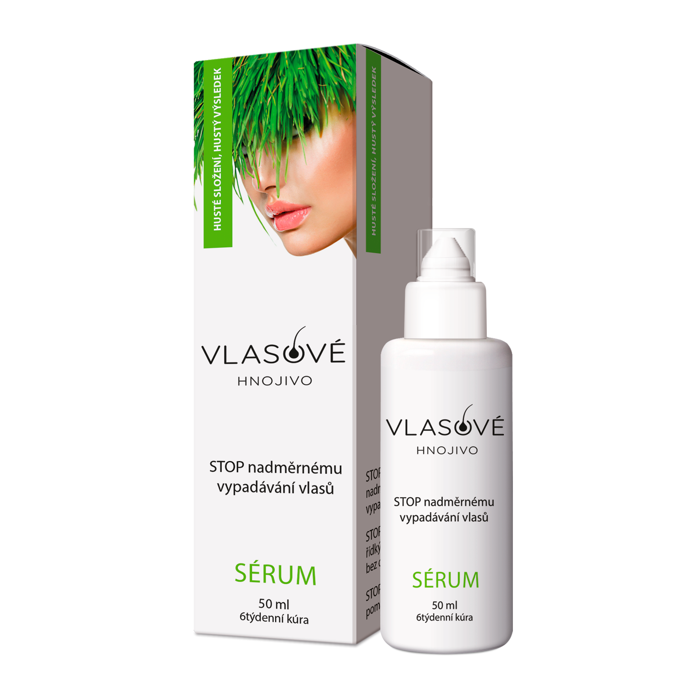 Vlasové hnojivo sérum představuje maximálně koncentrovanou podobu vlasové péče pro omezení nadměrného vypadávání a řídnutí vlasů, podporu jejich růstu, hustoty a kvality. Vysoká koncentrace účinných látek kofeinu a komplexu Hustoplex (extrakt kopřivy dvoudomé, extrakt zeleného čaje, extrakt silymarinu) zajišťuje rychlý a výrazný nástup účinku i při intenzivních problémech se zvýšeným vypadáváním, řídnutím a špatnou kvalitou vlasů. Bezoplachová forma séra usnadňuje aplikaci a zvyšuje vstřebatelnost účinných složek. Chladivý mentol příjemně osvěžuje vlasovou pokožku. Kofein je dobře známý pro své stimulační účinky na vlasové folikuly. Podporuje prokrvení a výživu vlasových folikulů a účinně tak omezuje nadměrné vypadávání vlasů, stimuluje růst nových vlasů a zvyšuje jejich odolnost. Pečující komplex Hustoplex zvětšuje objem účesu, omezuje vypadávání vlasů a podporuje jejich růst i krásu. Extrakt kopřivy dvoudomé pozitivně ovlivňuje metabolizmus vlasových folikulů a má stimulující účinek, čímž omezuje vypadávání a podporuje růst nových vlasů. U vlasové pokožky kopřiva omezuje tvorbu lupů, svědění a nadměrné maštění pokožky i vlasů. Extrakt zeleného čaje má silné antioxidační a ochranné účinky na vlasové buňky. Zelený čaj omezuje vypadávání vlasů, podporuje jejich růst i objem a omezuje poškození vlasových buněk. Extrakt silymarinu chrání vlasové folikuly před nepříznivým vlivem škodlivin a vnějších vlivů, zpevňuje a posiluje vlasové folikuly a omezuje vypadávání vlasů. Silymarin stimuluje metabolizmus vlasových folikulů a zlepšuje tím u vlasů jejich krásný a silný vzhled.