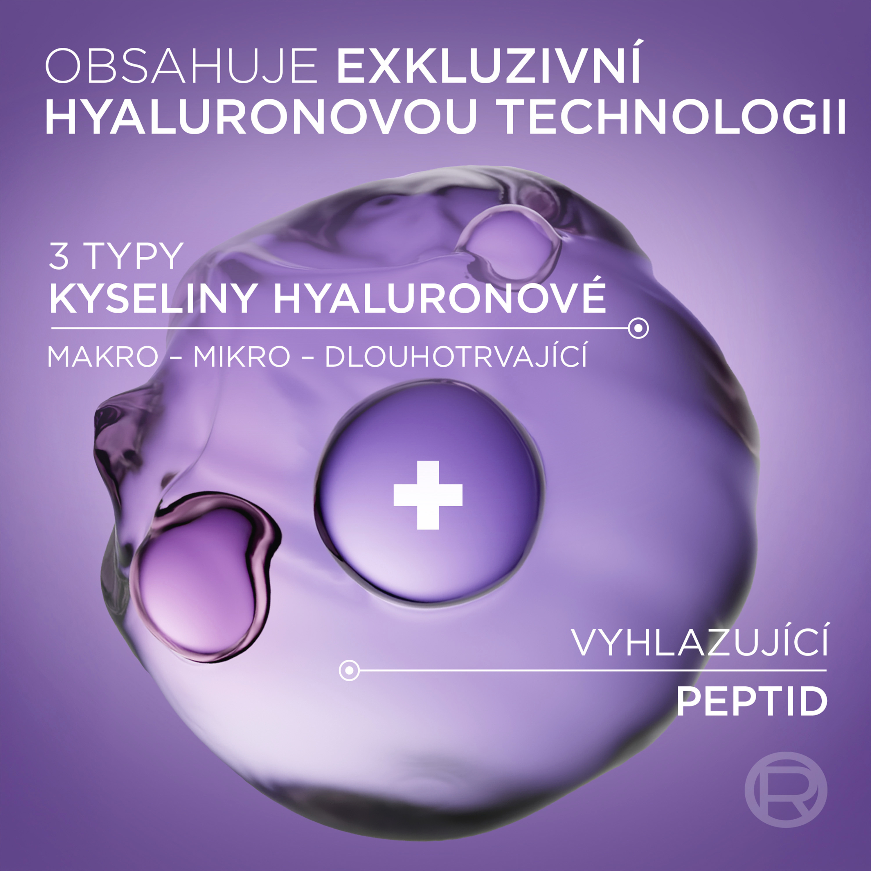 - Mikro-epidermální kyselina hyaluronová: Nová generace kyseliny hyaluronové, 50× menší než makro kyselina hyaluronová. Proniká hlouběji do povrchových vrstev pleti pro vyplnění vrásek.