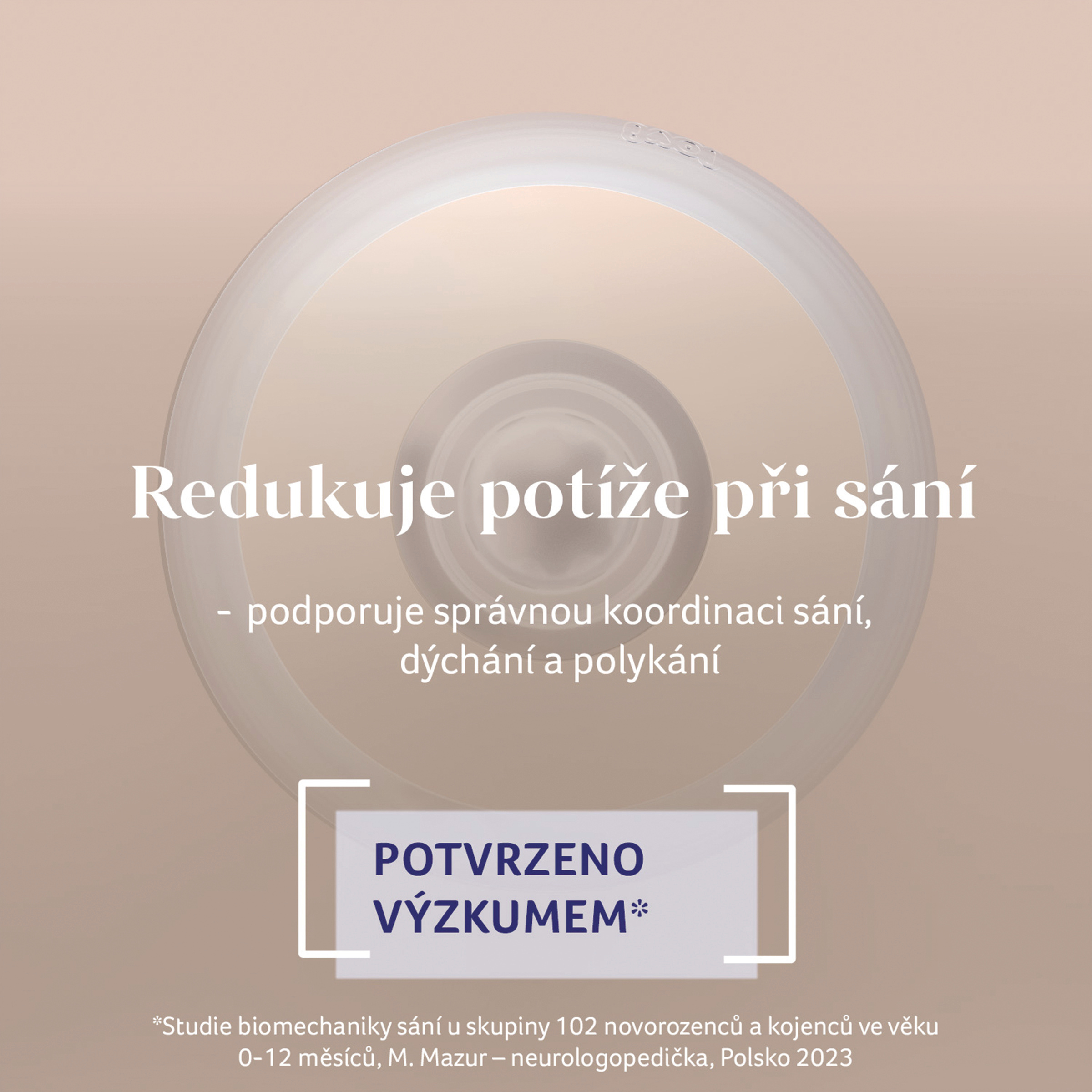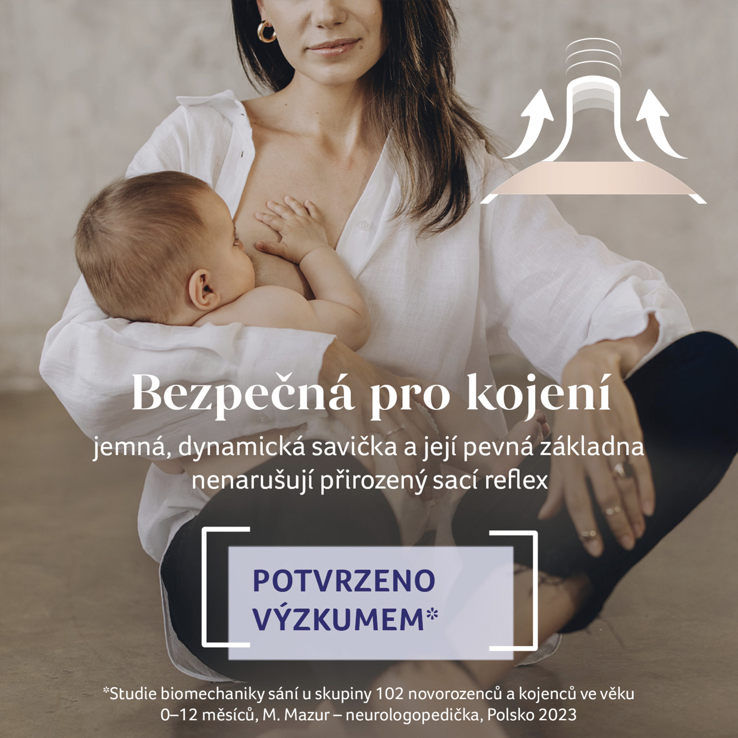 - Jemná dynamická savička – rozšiřuje se a stahuje se sacím reflexem dítěte
