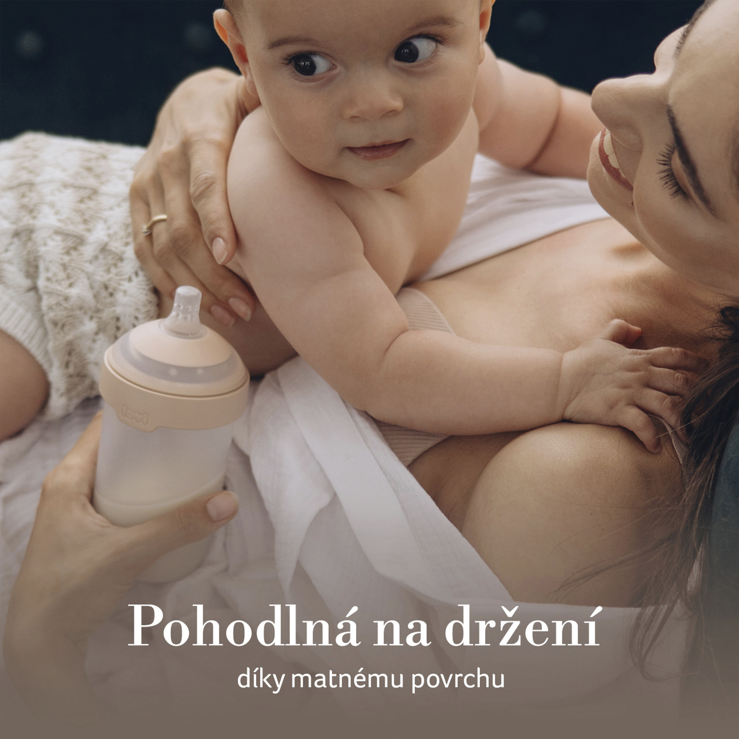 - Harmonie designu lahví – správné proporce lahve, lahev je navíc matná na dotek, díky čemuž se rodičům příjemně a pohodlně drží