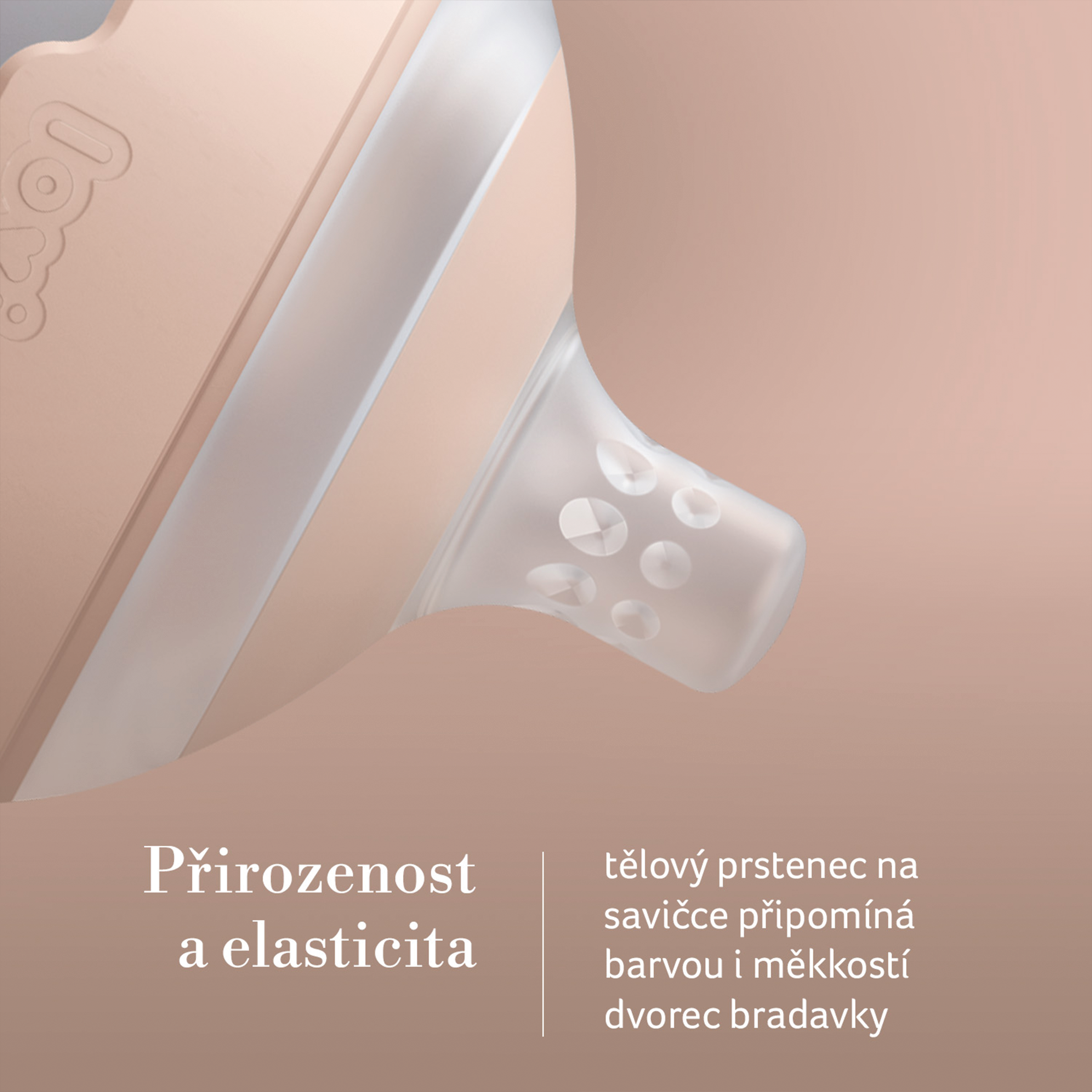 - Přirozenost a elasticita – jedinečný, béžově zbarvený kroužek přirozeně připomíná barvou a jemností dvorce bradavek
