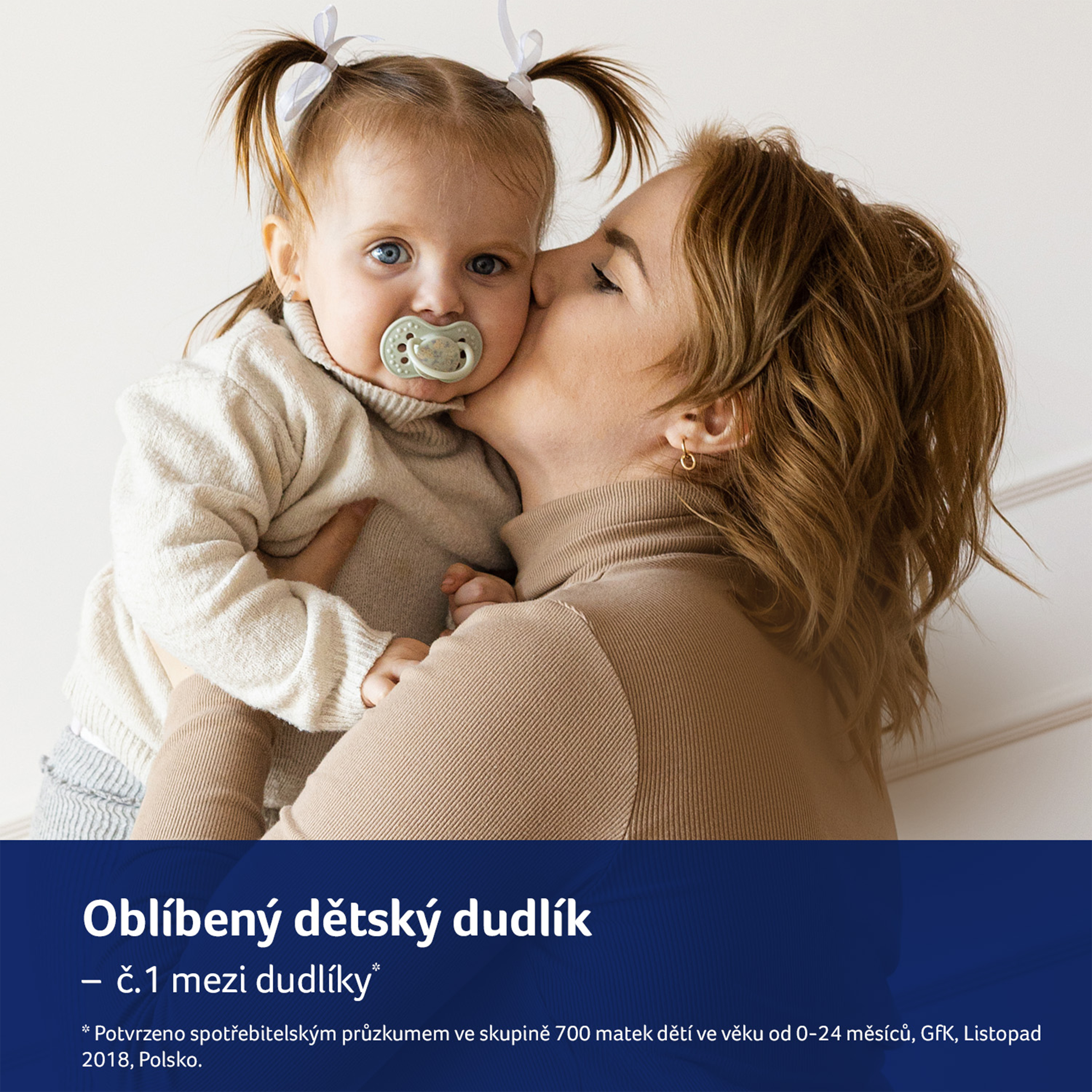 - Oblíbený dětský dudlík - potvrzeno ve spotřebitelském průzkumu provedeném na skupině 700 matek dětí ve věku 0-24 měsíců, GfK, listopad 2018, Polsko.