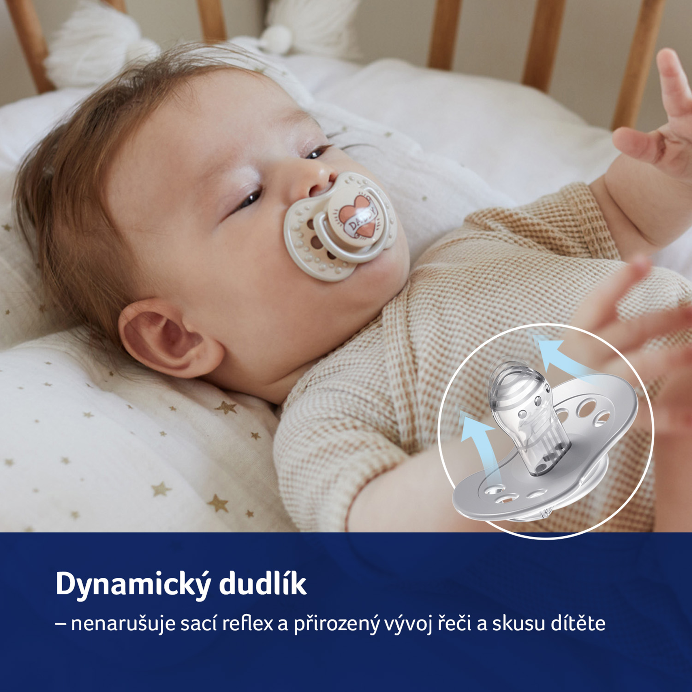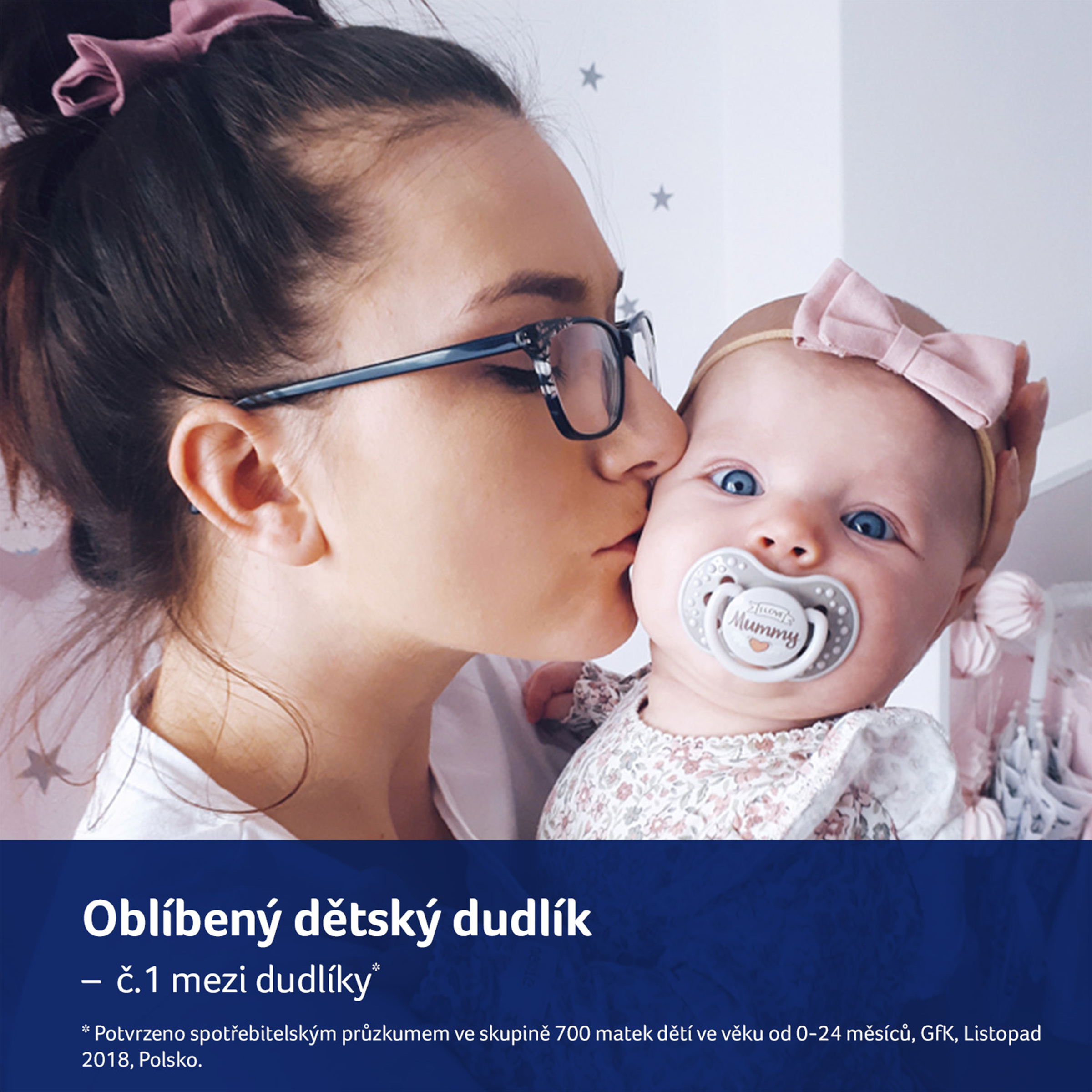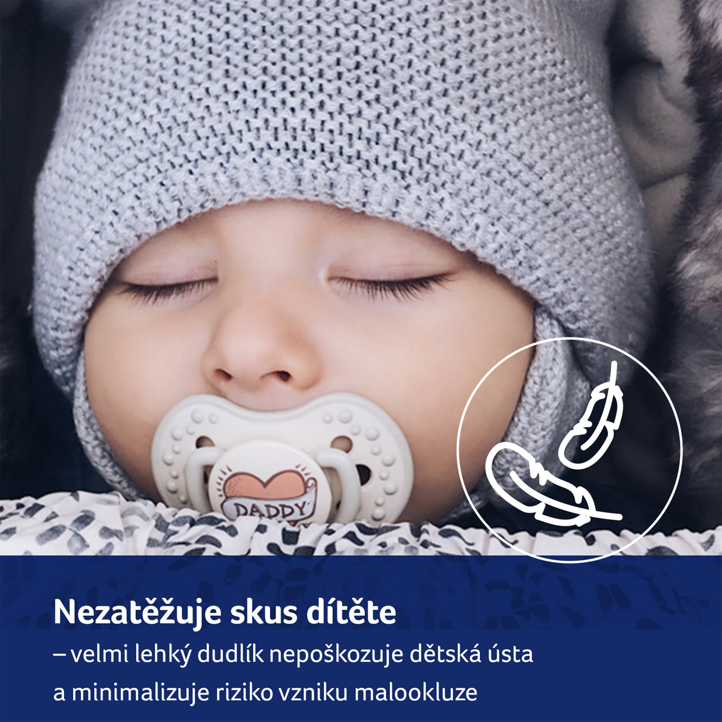 Důležité pro zdraví a bezpečnost vašeho dítěte! Před každým podáním dítěti zkontrolujte kvalitu dudlíku. Věnujte dudlíku zvýšenou pozornost poté, co dítěti vyrostou první zoubky. Vyzkoušejte kvalitu špičky důkladným natažením všemi směry. Při prvních známkách poškození dudlík ihned vyhoďte a již dále nepoužívejte. Používejte pouze takové držáky dudlíků, které odpovídají požadavkům normy EN12586. Nikdy nepřipevňujte dudlík na různé šňůrky, tkaničky či stužky oděvu. Dítě se může zadusit. Nenechávejte dudlík na přímém slunečním světle, v blízkosti tepelného zdroje nebo v dezinfekčních prostředcích déle, než je doporučováno - můžete způsobit oslabení špičky dudlíku.
