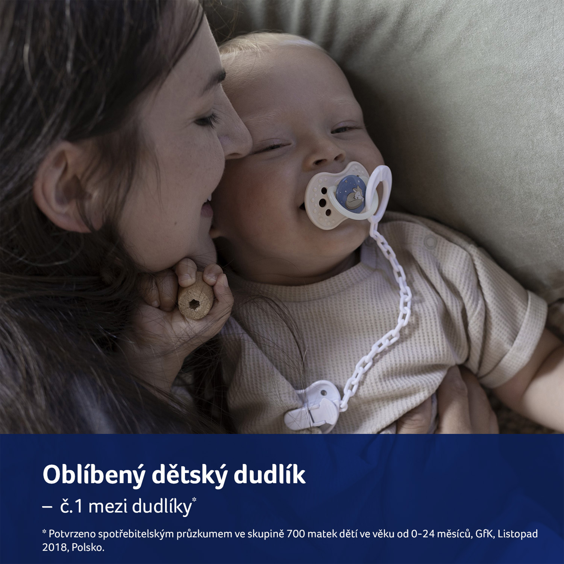 Důležité pro zdraví a bezpečnost vašeho dítěte! Před každým podáním dítěti zkontrolujte kvalitu dudlíku. Věnujte dudlíku zvýšenou pozornost poté, co dítěti vyrostou první zoubky. Vyzkoušejte kvalitu špičky důkladným natažením všemi směry. Při prvních známkách poškození dudlík ihned vyhoďte a již dále nepoužívejte. Používejte pouze takové držáky dudlíků, které odpovídají požadavkům normy EN12586. Nikdy nepřipevňujte dudlík na různé šňůrky, tkaničky či stužky oděvu. Dítě se může zadusit. Nenechávejte dudlík na přímém slunečním světle, v blízkosti tepelného zdroje nebo v dezinfekčních prostředcích déle, než je doporučováno - můžete způsobit oslabení špičky dudlíku. Sejmutý kryt uchovávejte mimo dosah dítěte - předejdete možnému zadušení.