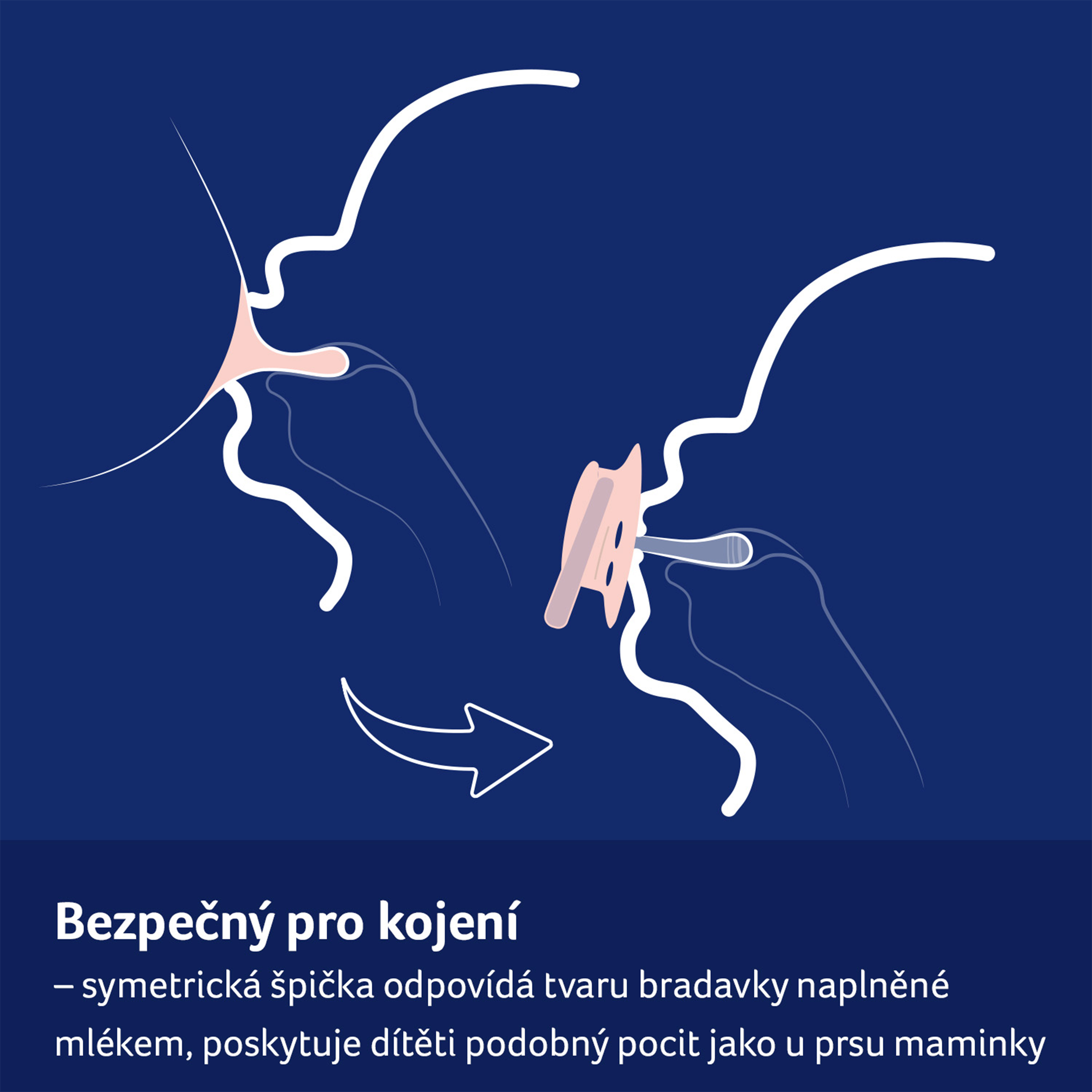 - Dynamický dudlík - nenarušuje sací reflex a přirozený vývoj řeči a skusu*.