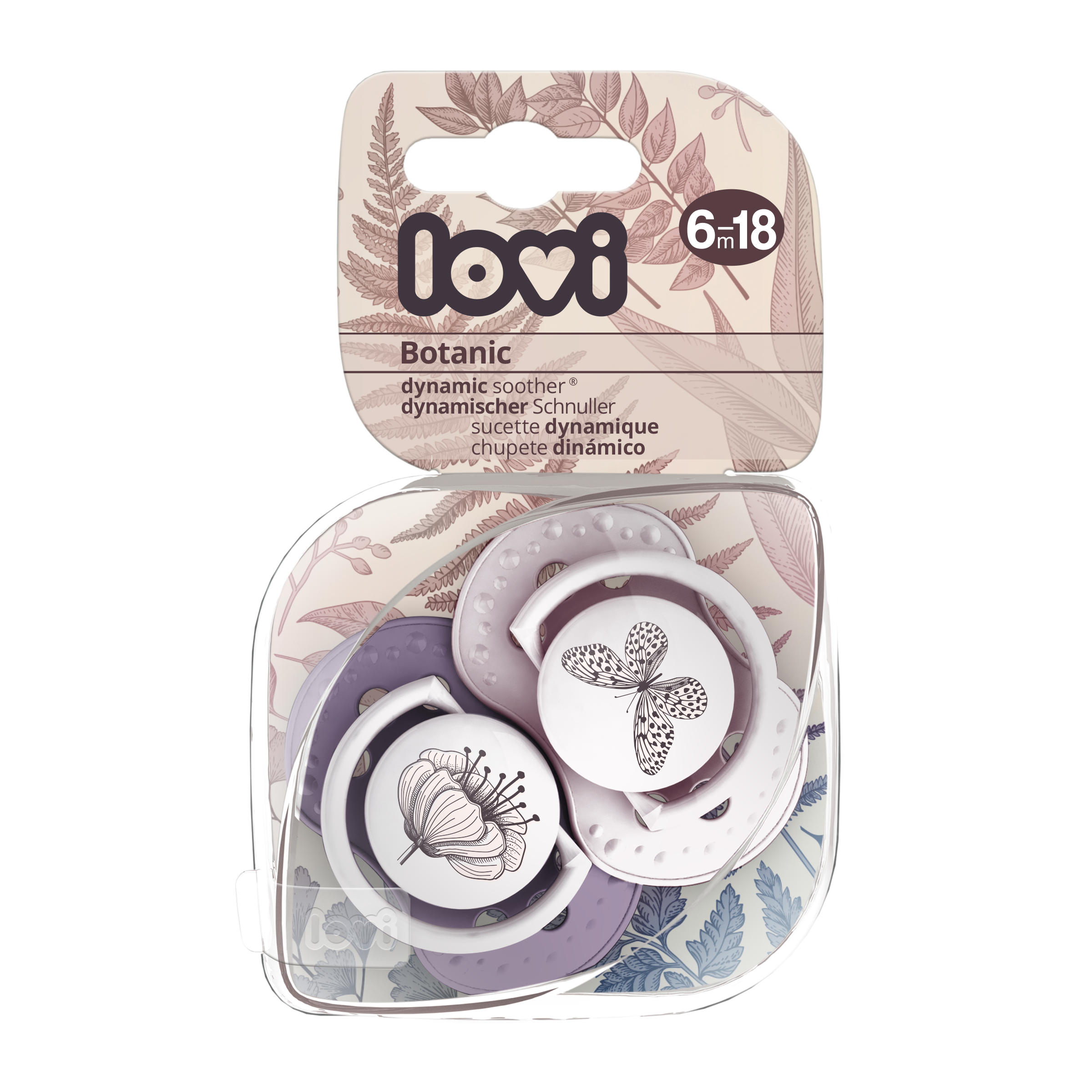 Silikonový symetrický dynamický dudlík LOVI z kolekce BOTANIC byl vytvořen ve spolupráci s neurologopedy s cílem zajistit přirozený a zdravý vývoj zubního patra, zubů a dásní dítěte. Neobsahuje BPA. V balení 2 ks.