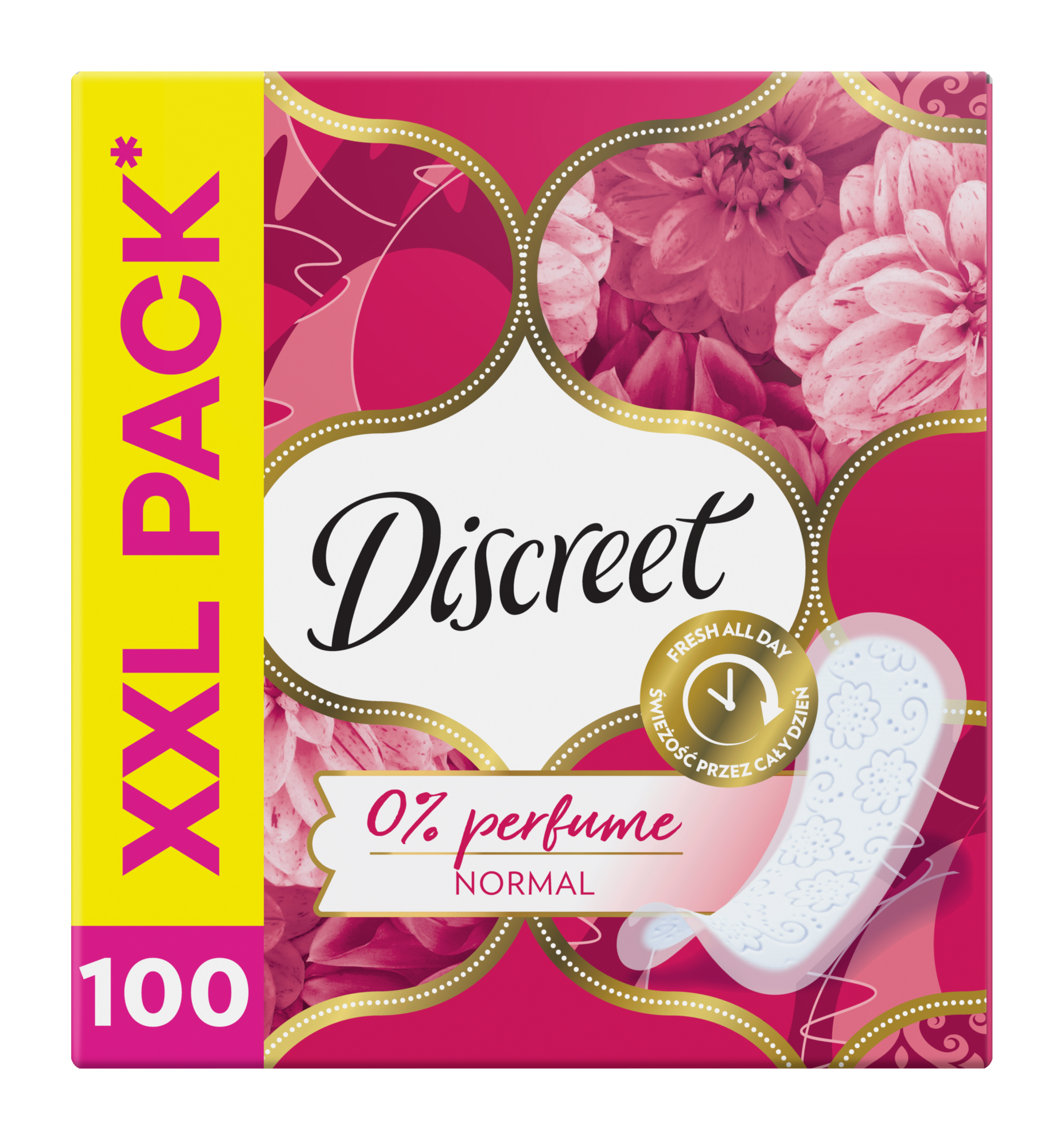 Neparfémované intimky Discreet Normal vám pomohou zůstat svěží a krásná po celý den. Intimky s lepicí vrstvou až k okrajům dokonale chrání spodní kalhotky. Design těchto intimek umožňuje pokožce v intimních partiích přirozeně dýchat a zajišťuje tak až 12 hodin svěžesti a pohodlí. Jsou tak tenké, že je ani neucítíte. Tato varianta obsahuje 0 % parfemace. Bez ohledu na to, co vám dnešek přinese, s těmito intimkami to zvládnete!